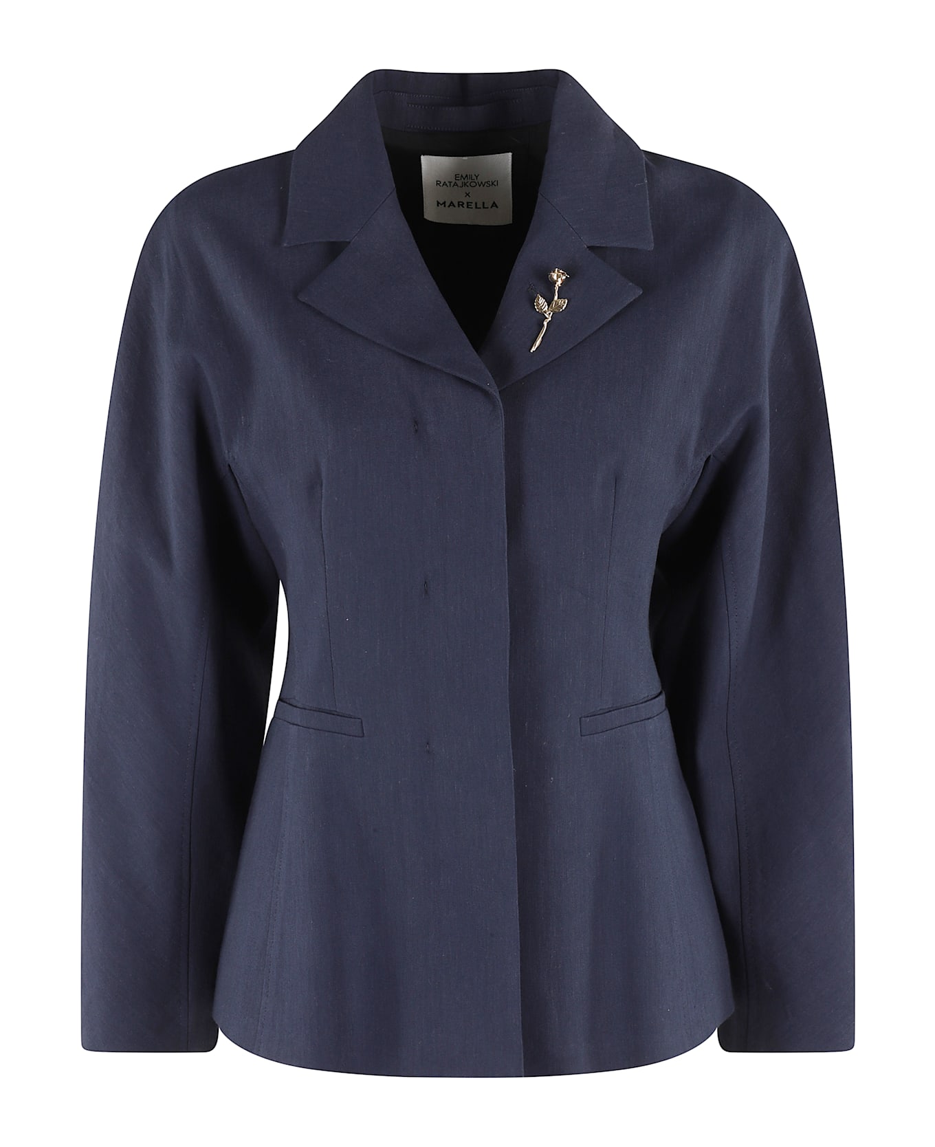 Blazer The Rounded - Marella X Emily Ratajkowski - Blue color - Linen-blend fabric - Removable lapel neckline and brooch - Long kimono sleeve - Flush side pockets - Single-breasted button closure - Loose fit