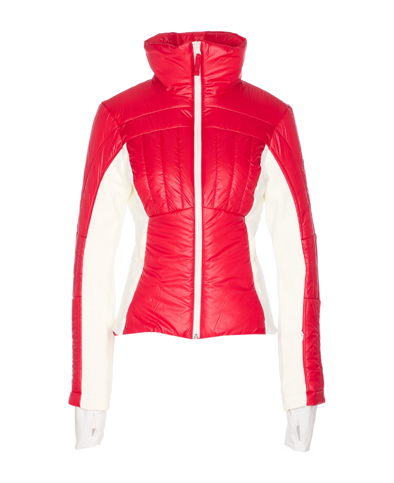 Jet Set red Tanja down jacket with frontal zip closure, high neck, long sleeves, zip pockets, padded, lateral patch logo