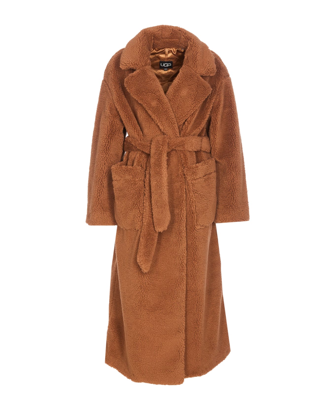 Ugg pecan Alesandra long coat, faux fur, double breasted buttons closure, V-neck, reverse detail on the front, long sleeves, pockets, belt closure Composition: 100% Polyester, 100% Polyester