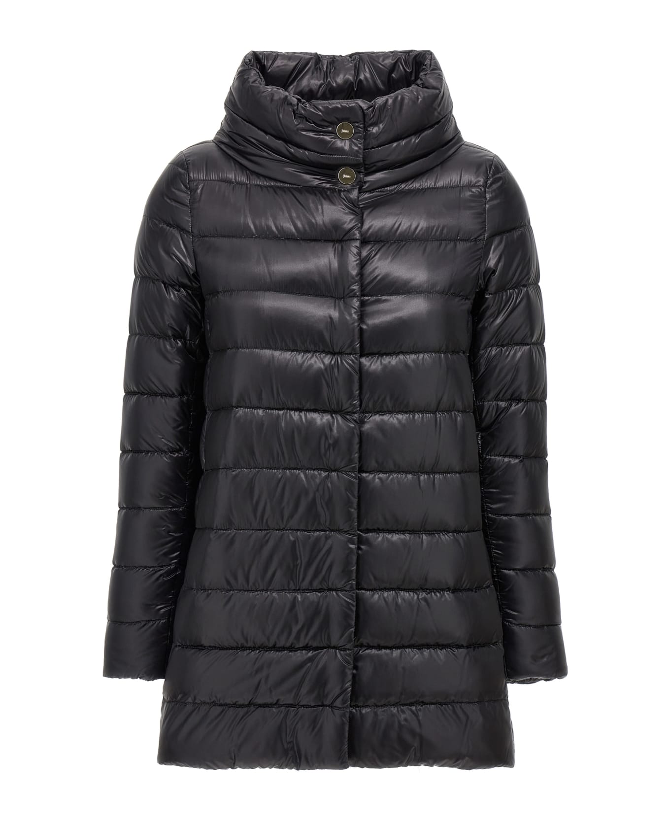 'Amelia' down jacket in Ultralight 200 gr. nylon with goose feather padding, button closure, pockets, crater collar, long sleeves. Composition: 100% polyamide