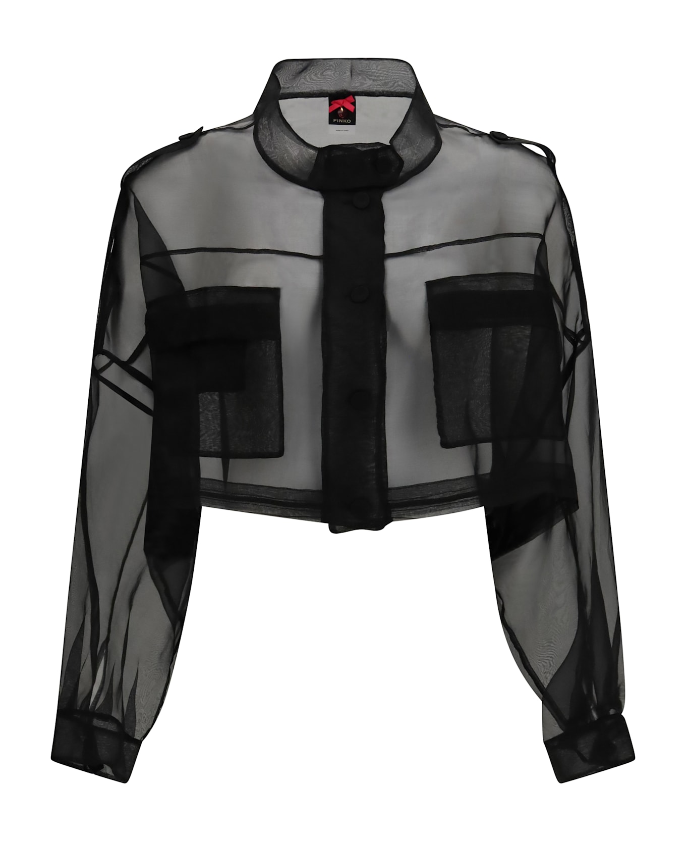 The cropped jacket with pockets by pinko delivers a contemporary expression of femininity through a clean and refined construction. crafted from silk, it features a front button closure that creates a compact, streamlined line. chest patch pockets add a functional detail to the design, while the cropped cut enhances the silhouette with modern balance. a piece designed to elevate the wardrobe with lightness and character.