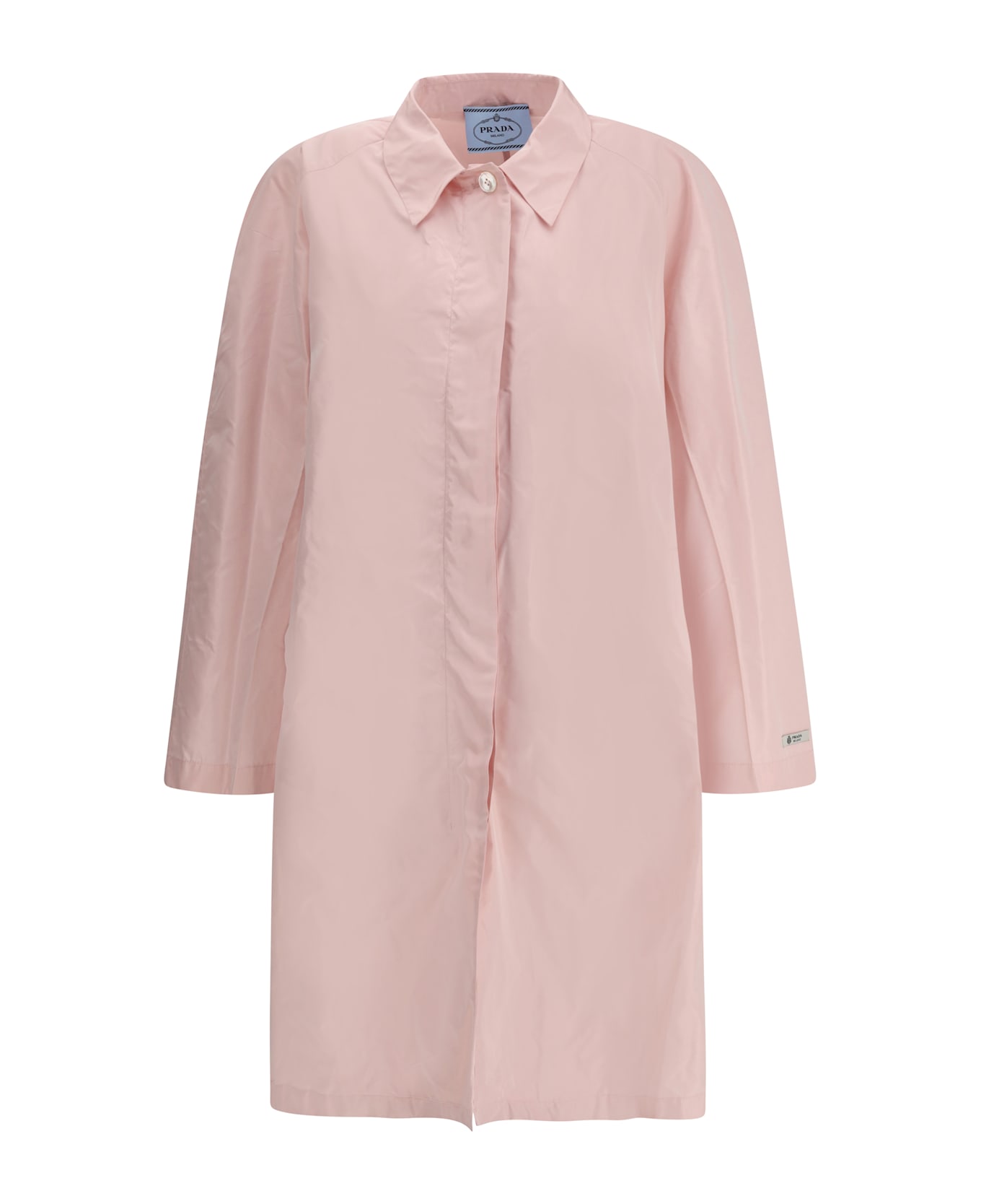 The taffeta tec coat by prada blends tailored precision with an airy, contemporary lightness, offering a poetic and effortless reinterpretation of a classic prada wardrobe staple. crafted from technical taffeta, the coat harmonizes structure and fluidity, resulting in an essential and refined silhouette that reflects the maison s distinctive aesthetic. Composition: 100% % Silk