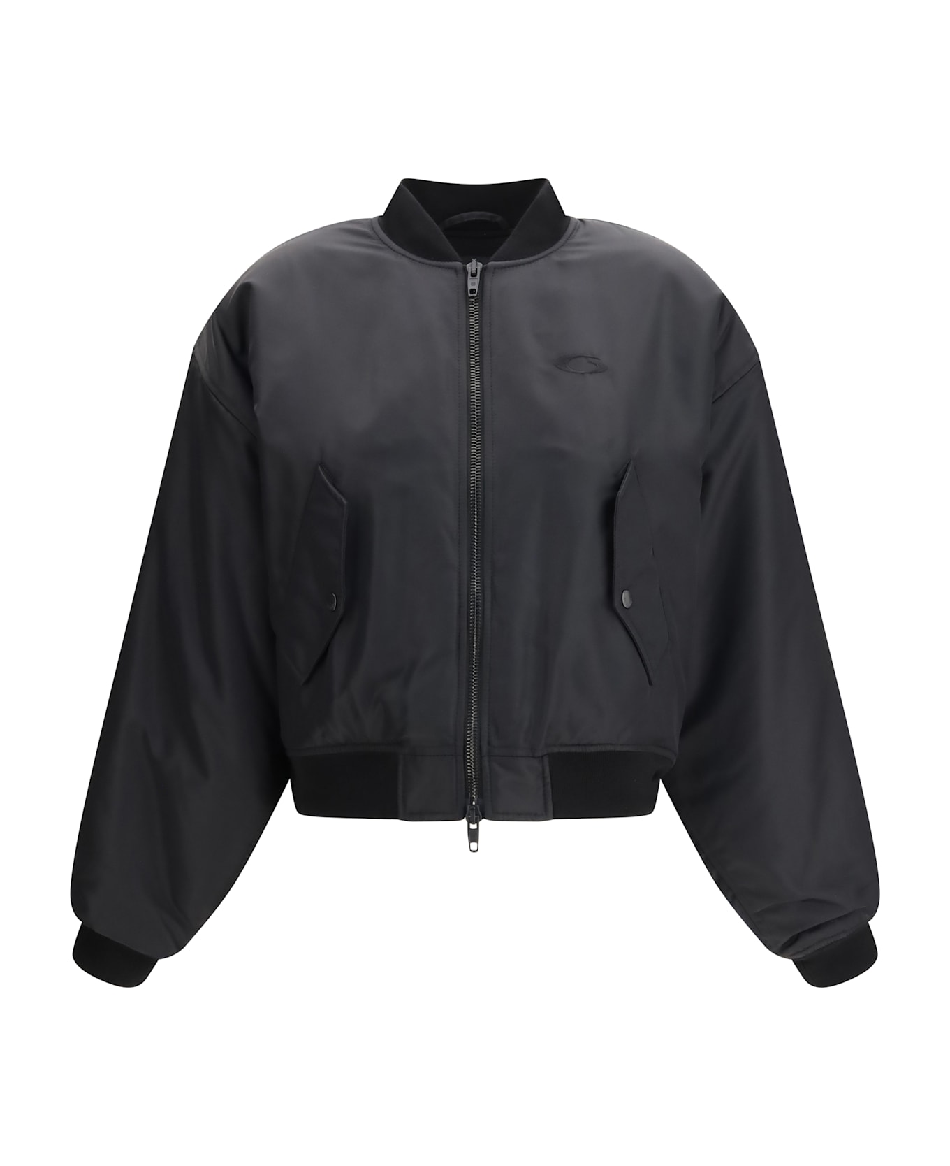 The bomber jacket by balenciaga redefines a streetwear classic through a refined, contemporary lens. crafted from technical satinated polyamide, it features a subtle sheen that adds depth and character to the silhouette. a zip closure, two front snap flap pockets, and ribbed trims echo traditional bomber details, while the tone-on-tone loop sports icon embroidered on the chest and back delivers a discreet yet recognizable signature. a versatile, modern piece designed to elevate urban looks with understated luxury and functionality.