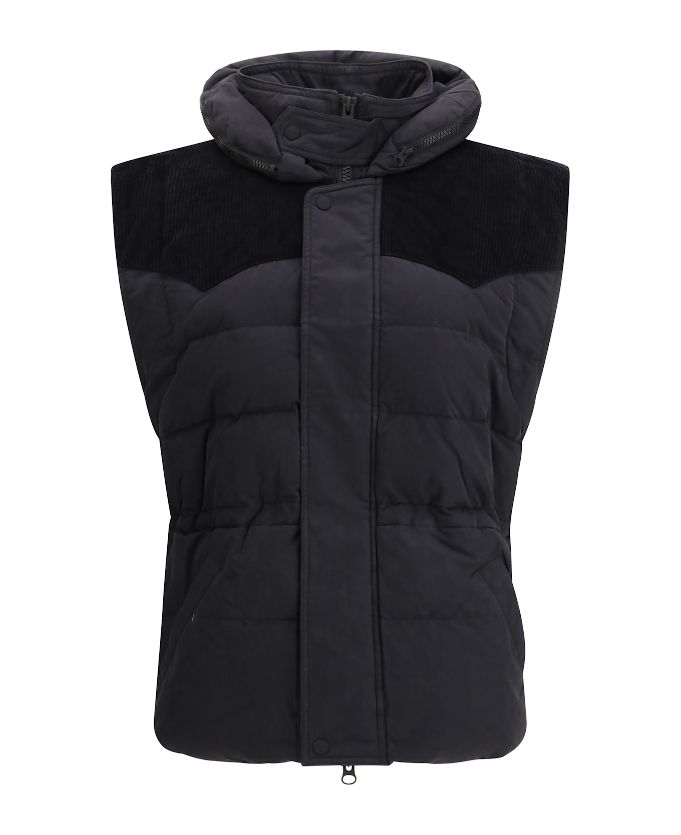 The olfa padded gilet by marant etoile blends functionality with contemporary style. featuring corduroy details, it adds texture and character to the design. padded for warmth and comfort, it is finished with a high neck for added protection and a front zip closure. front pockets complete the piece, offering practicality and ease, making it ideal for casual, urban looks and effortless layering during transitional seasons.