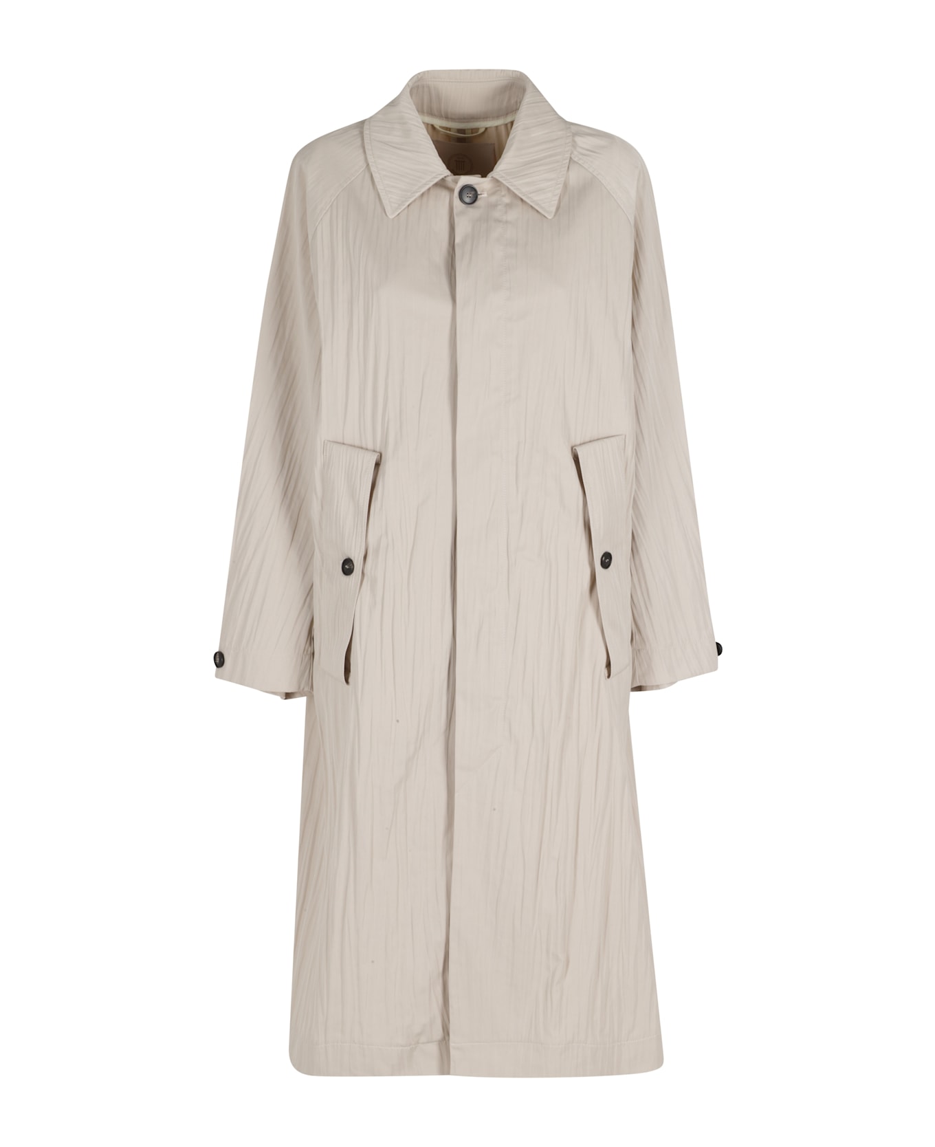 Category: Trench coat Item: Mistletoe Brand: Canvas Color: Beige Collar: Classic Closure: Front with concealed buttons Pockets: Flush sides Details: Wrinkled effect SIZE & FIT Sleeves : Long Fit: Oversize Line: Flared Length: Long