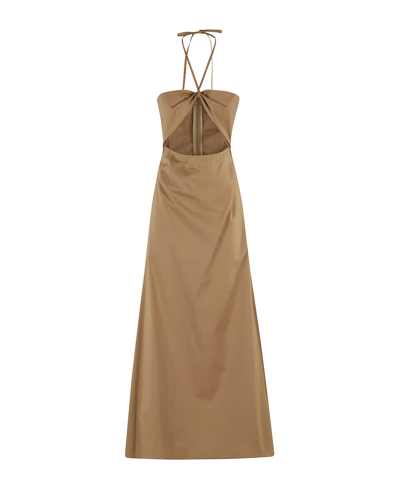 Cut-Out Top Dress - Federica Tosi - Khaki color - Cotton fabric - Top with cut-out insert - Drawstring neckline - Back zipper closure - Regular fit