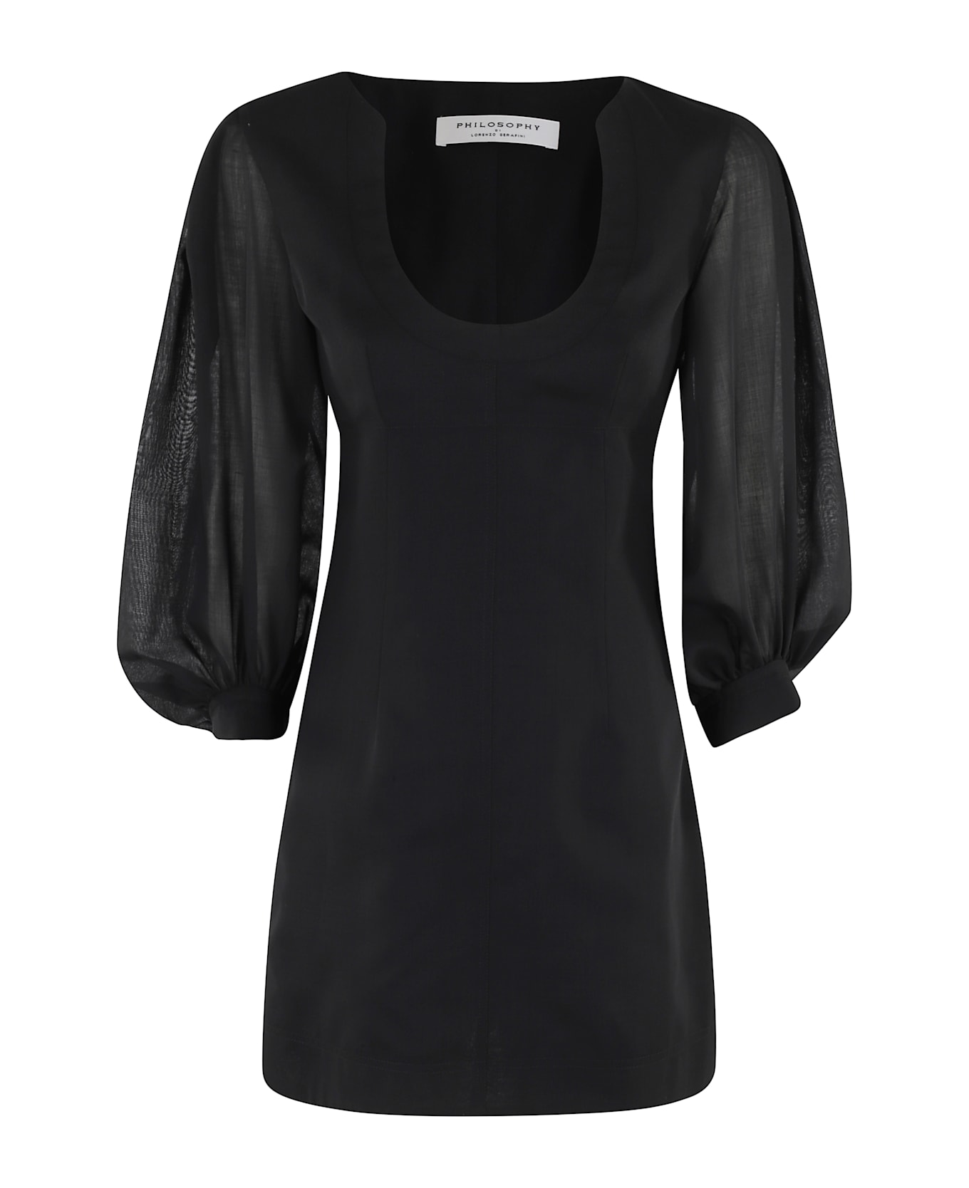 Mini dress -Philosophy di Lorenzo Serafini -Black color -Long sleeve -Round neck -Side zipper closure -Wide fit