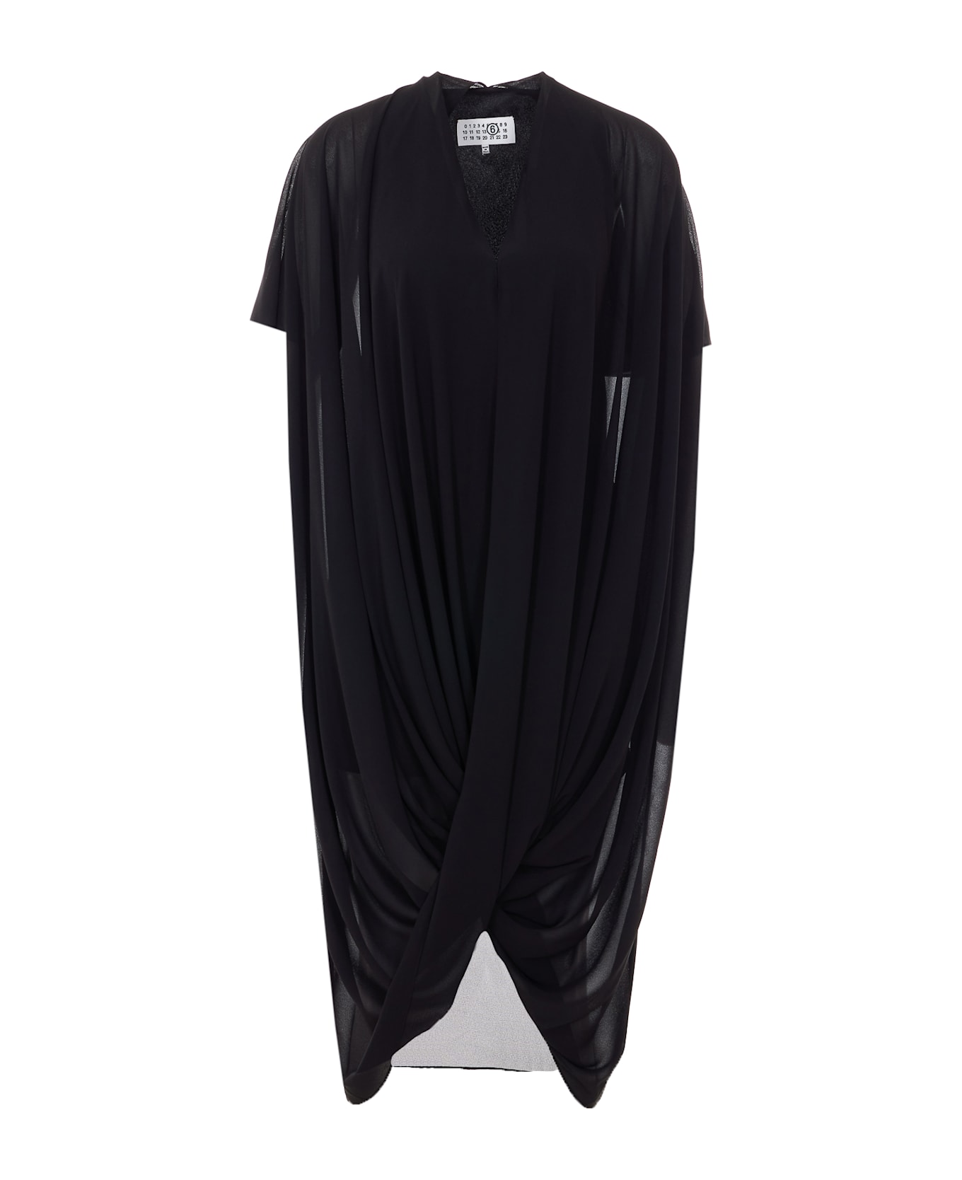 MM6 Maison Margiela black dress, v-neck, short sleeves, oversize fit, transparent effect Composition: 100% Polyester, 100% Viscose