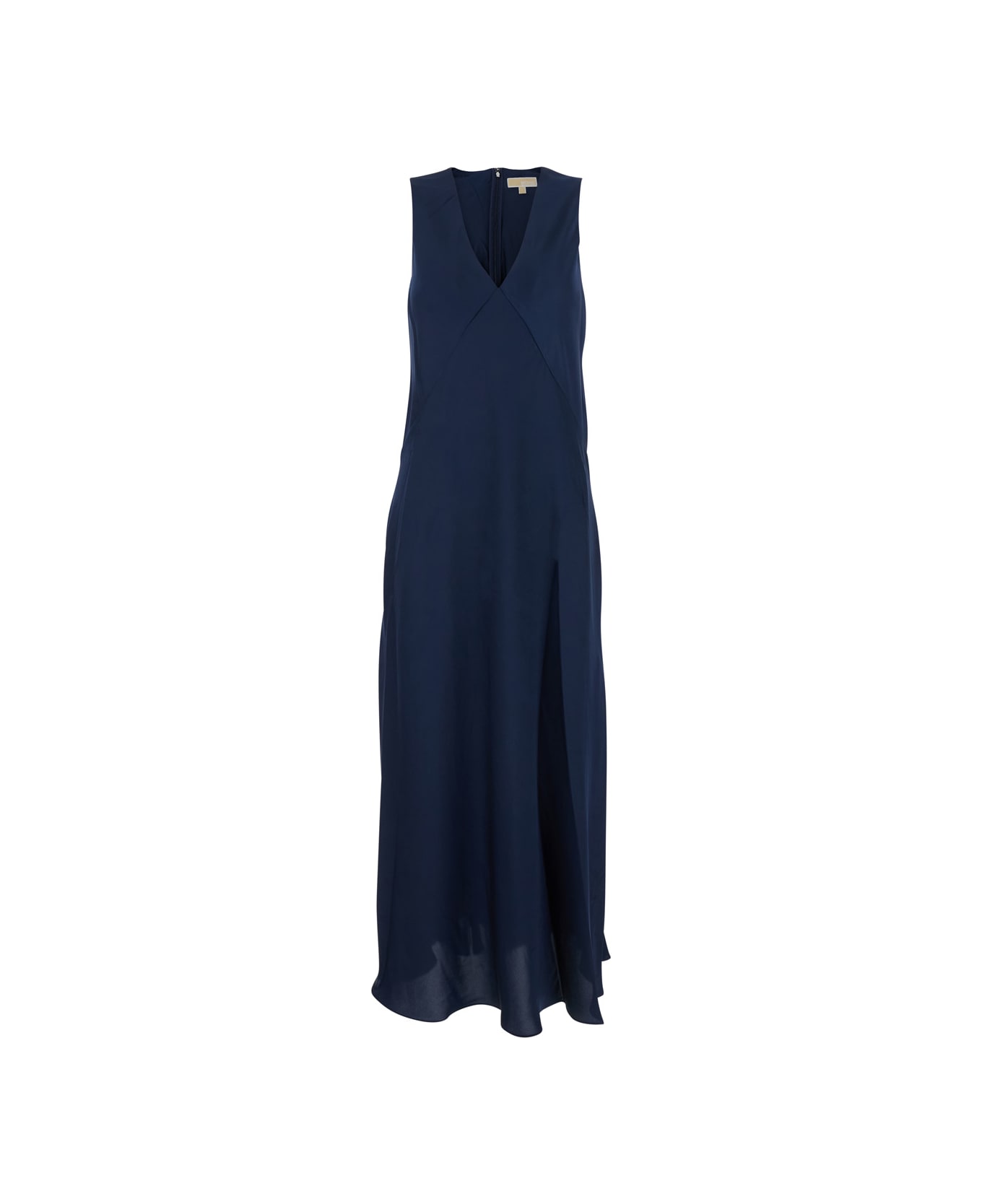 Blue Sleeveless Long Dress With V Neck And Rear Zip Closure In Tech Fabric Woman