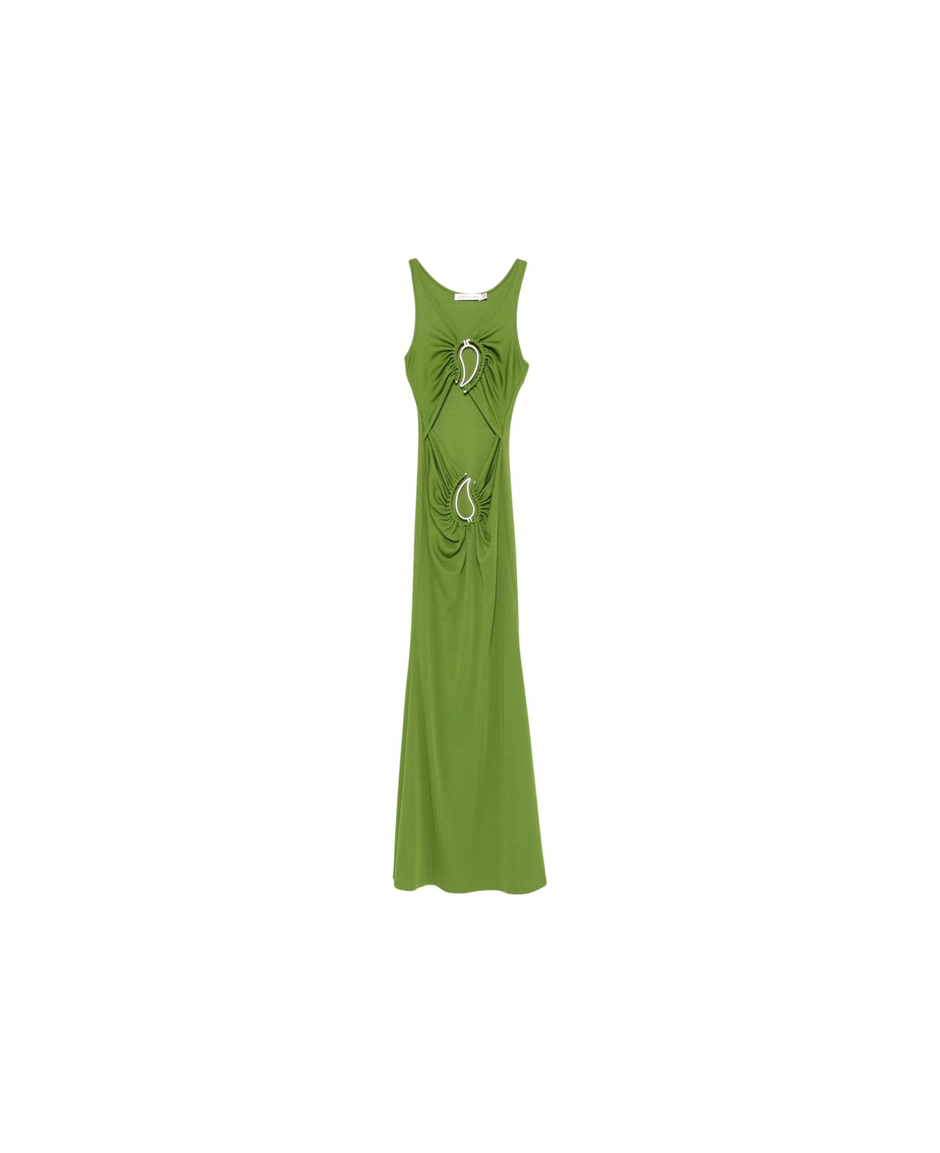 green cut-out sides teardrop-shaped rings sleeveless scoop neckline