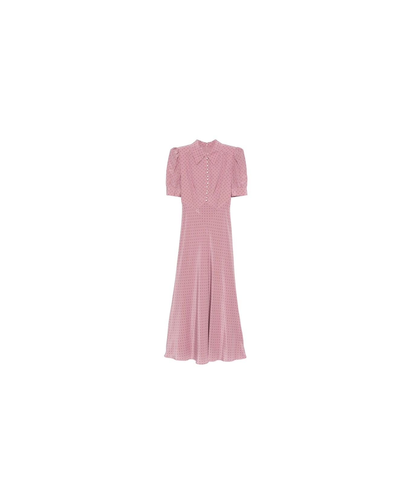 mauve polka dot front button fastening pointed collar short sleeves A-line skirt