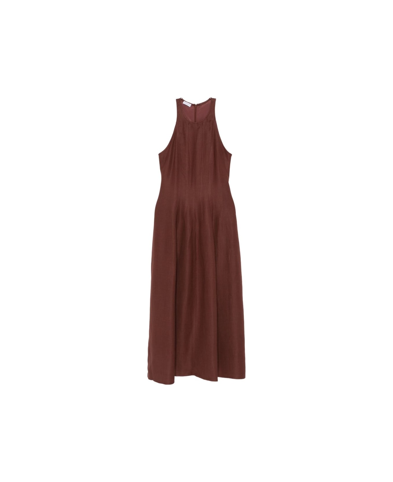 brown panelled construction sleeveless crew neck back concealed-zip fastening Composition: 72% Viscose, 28% Linen