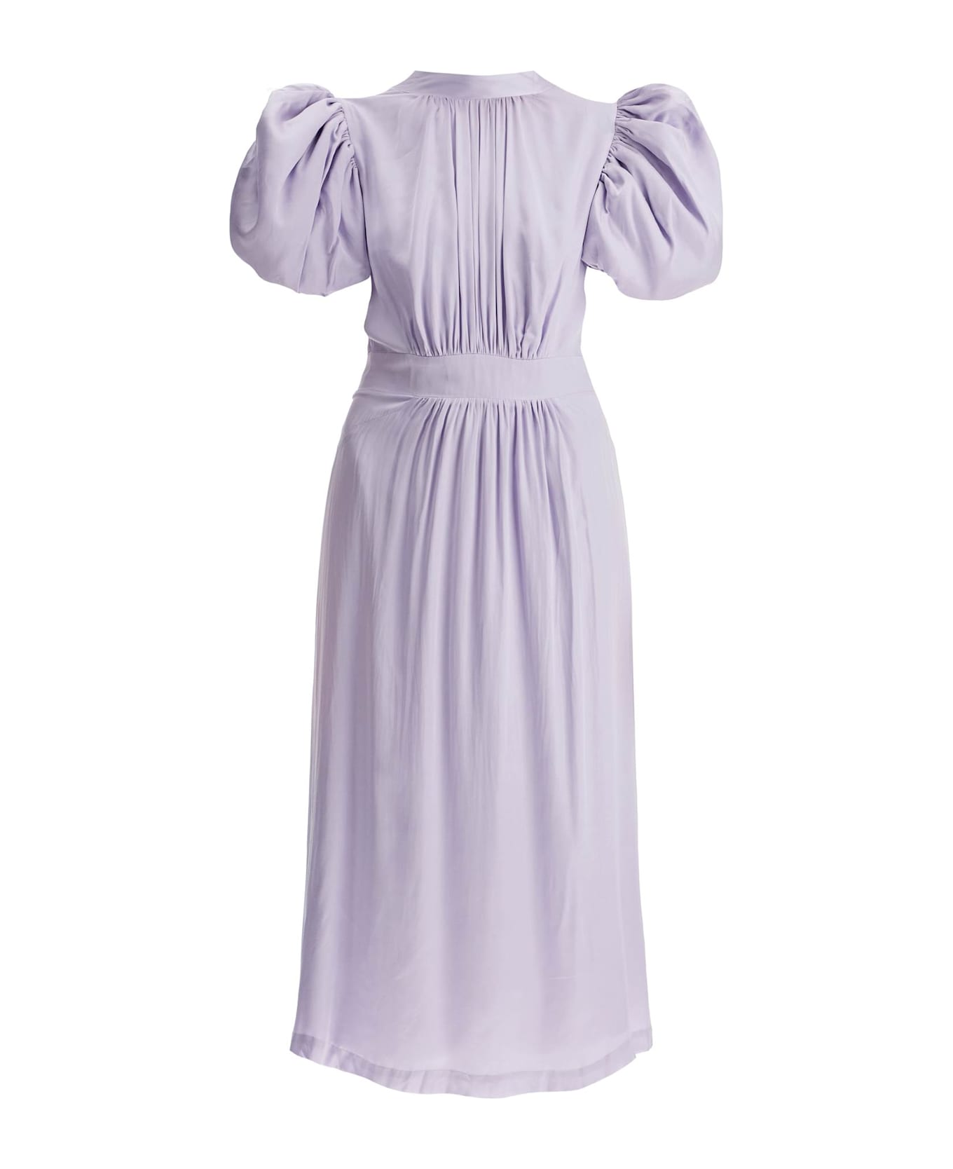 Midi Satin Dress With Puff Sleeves