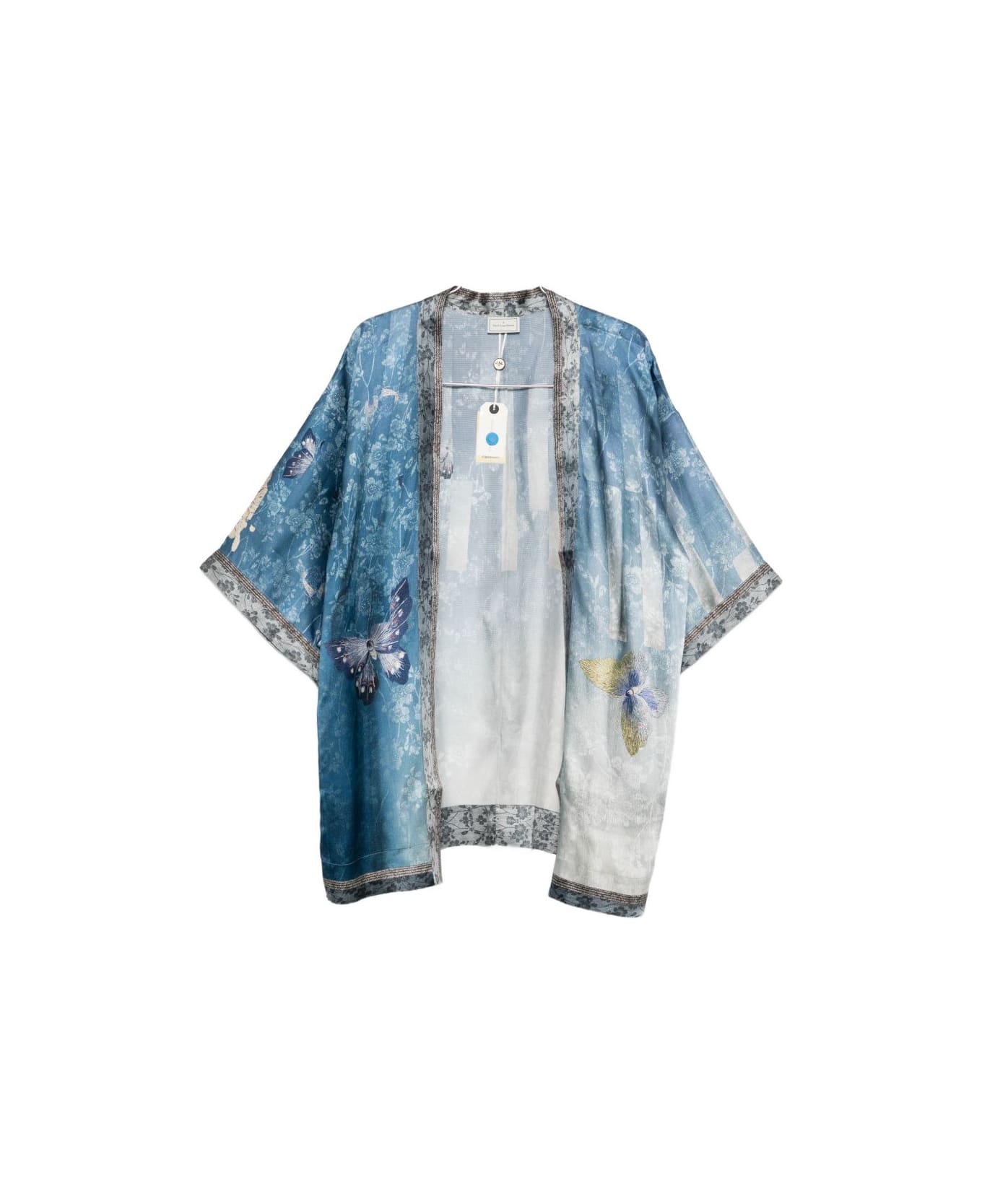 blue floral print butterfly print trim detail short sleeves open front