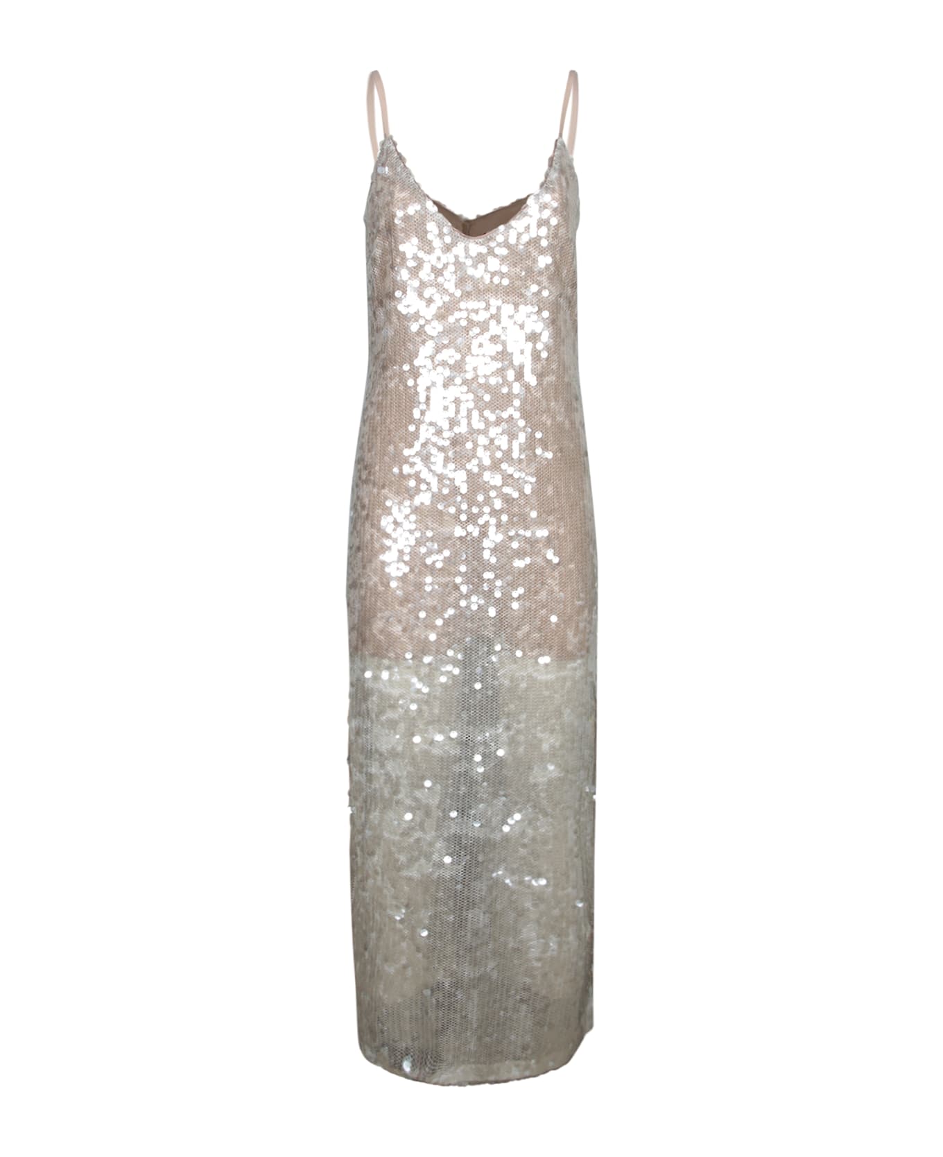 Defined by timeless elegance, this long dress by Federica Tosi captures attention with a rich adornment of silver sequins that sparkle with every movement. Composition: 100% Polyester