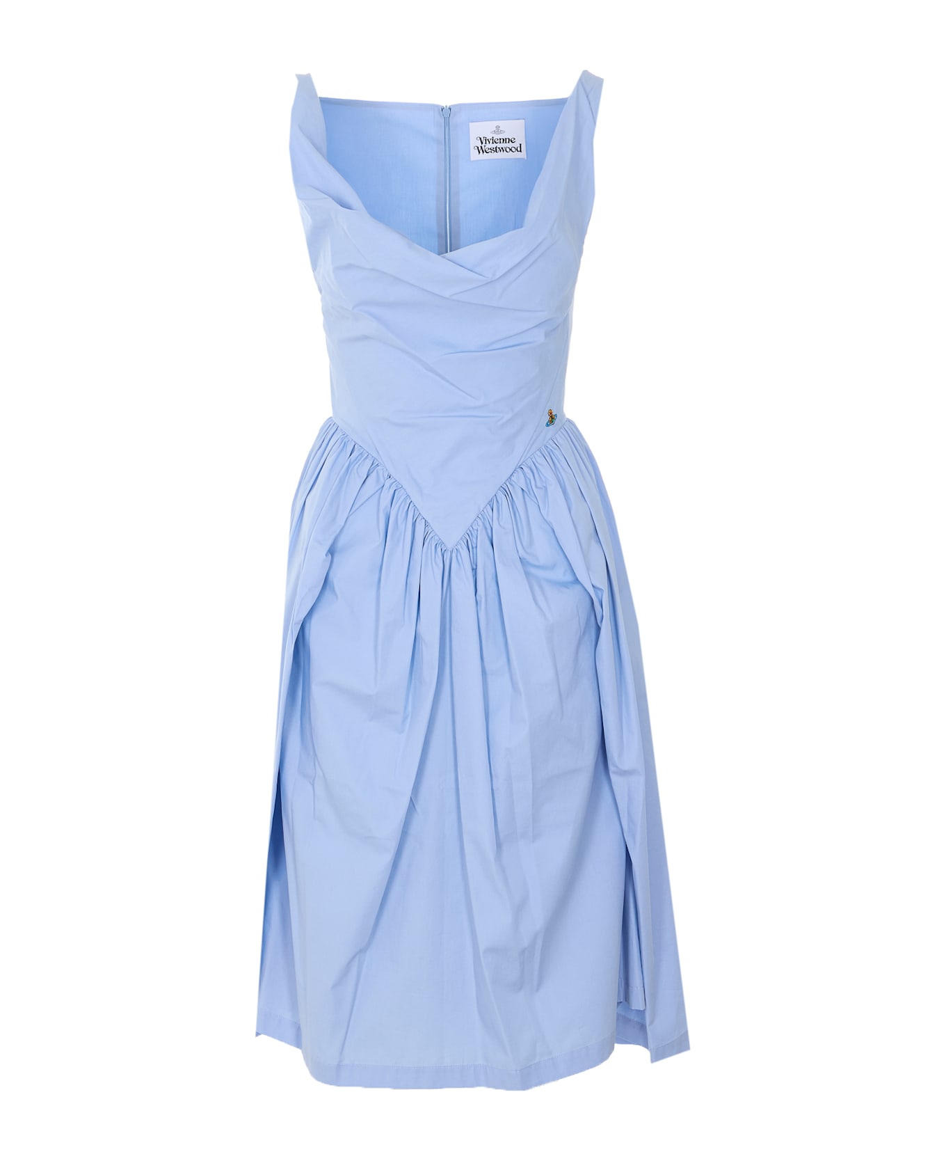 Vivienne Westwood light blue Sunday dress, zip closure on the back, embroidered Orb logo on the front, boat neckline, midi model Composition: 100% Cotton