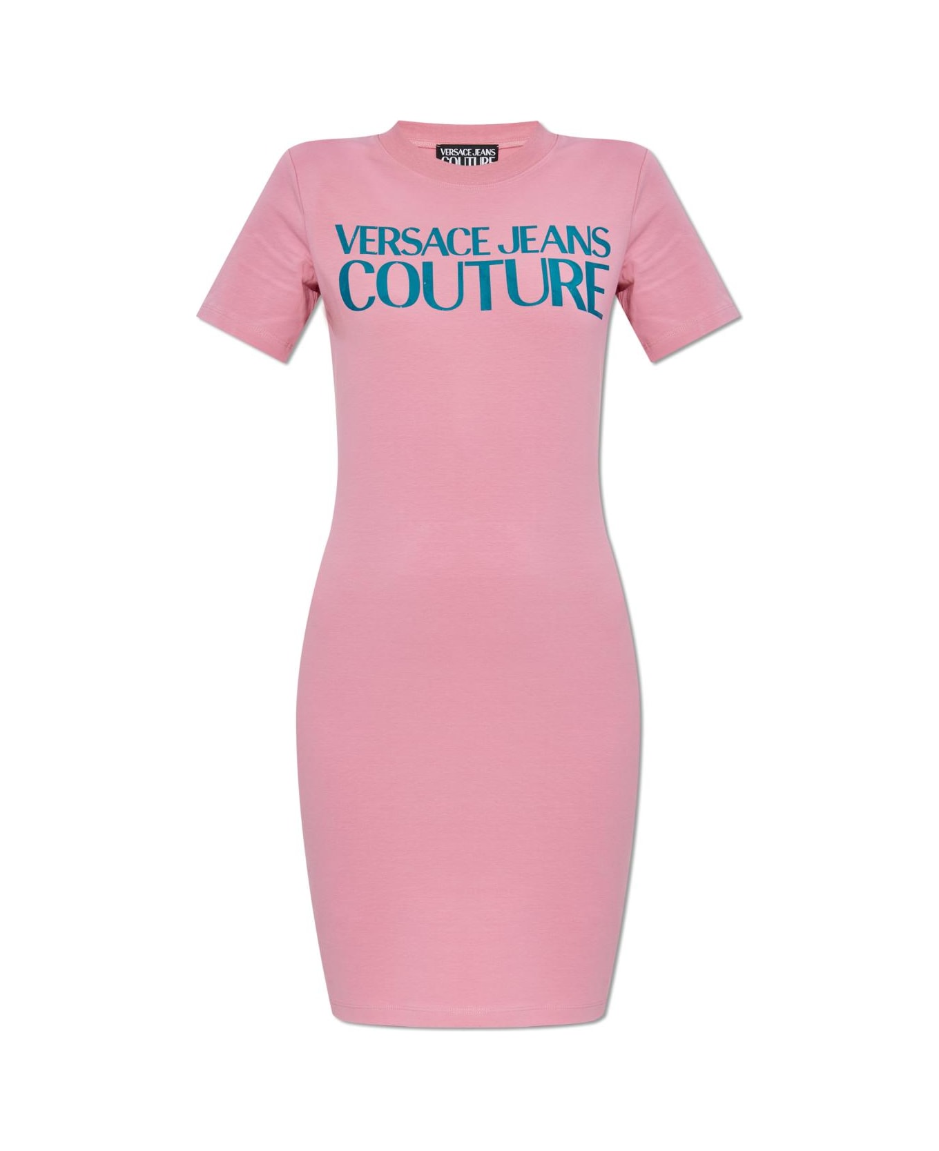 Elevate your wardrobe with this Versace Jeans Couture Logo Dress, a refined blend of sophistication and contemporary flair. Its tailored, above-the-knee silhouette gracefully accentuates the figure, while the minimalist design rendered in a signature, powder pink hue exudes modern elegance. Expertly crafted from a supple jersey cotton blend with a touch of elastane, the dress gently contours the body, offering unparalleled comfort and effortless style. A bold, turquoise VERSACE JEANS COUTURE logo emblazons the chest, making an unmistakable statement of luxury and artistry. Conceived by the creative lineage of Donatella and Gianni Versace, this piece fuses haute couture sensibilities with contemporary street influence, embodying the innovative spirit of the designer. Why choose this product? Distinguished by its striking logo and exclusive pastel color Luxurious, soft, and flexible jersey fabric Versatile short-sleeve, round-neck design A seamless union of high-fashion and urban inspiration A bold expression of designer heritage and iconic style