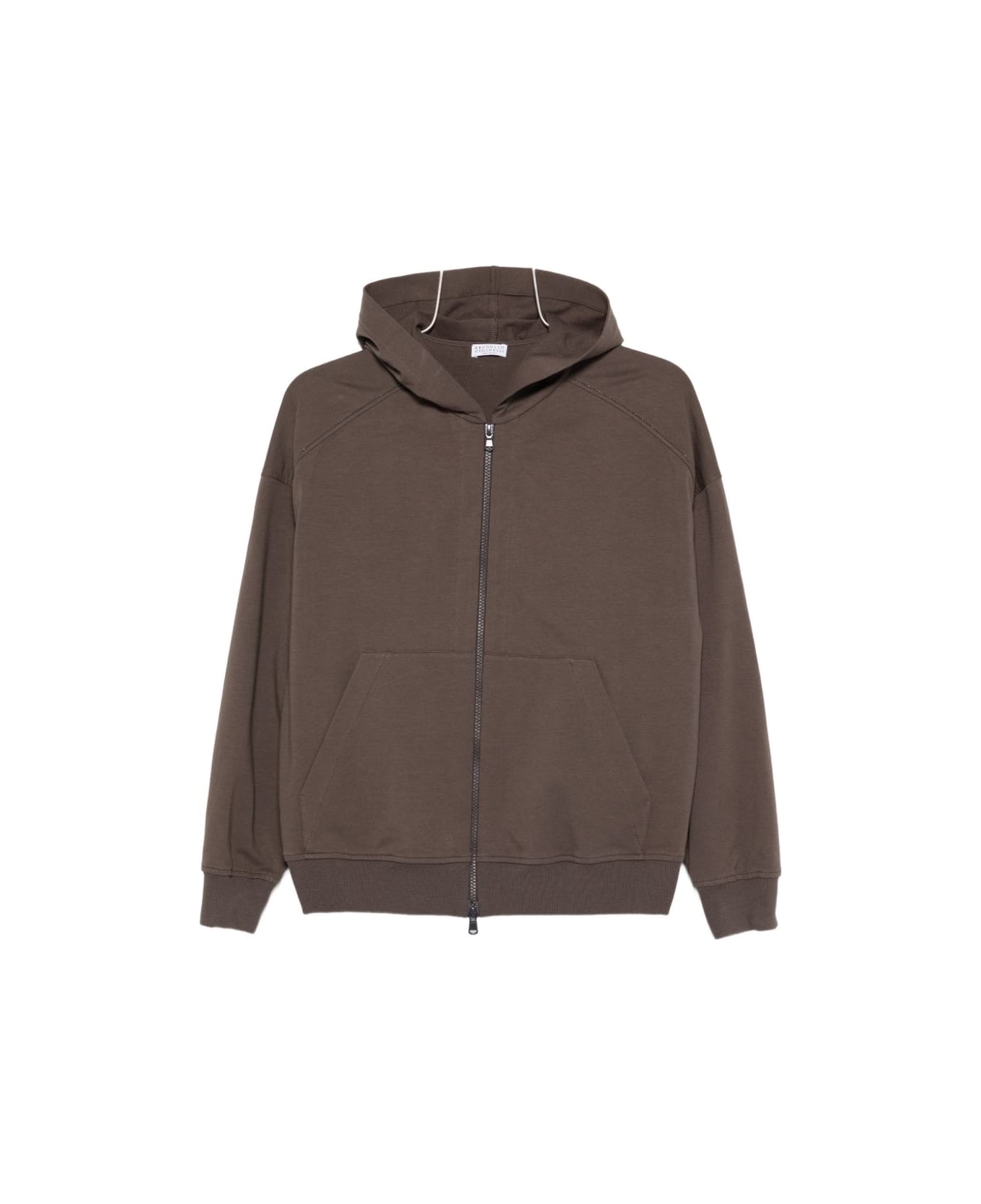 brown hood front zip fastening front pouch pockets long sleeves ribbed hem Composition: 98% Cotton, 2% Elastane