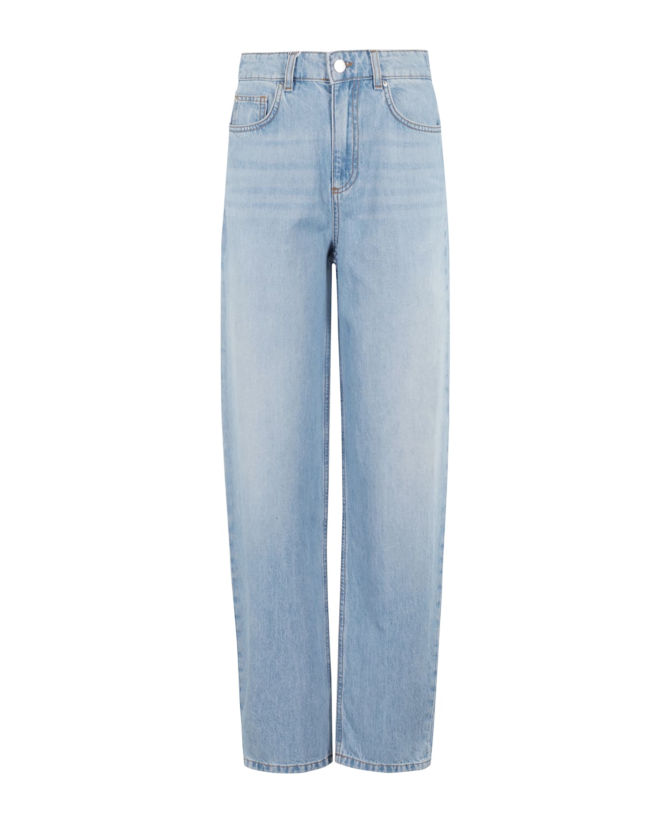 Barrel Jeans - Marella X Emily Ratajkowski - Light blue color - Mid/low waist with belt loops - Barrel leg - Five-pocket style - Front button and zipper closure - Regular fit