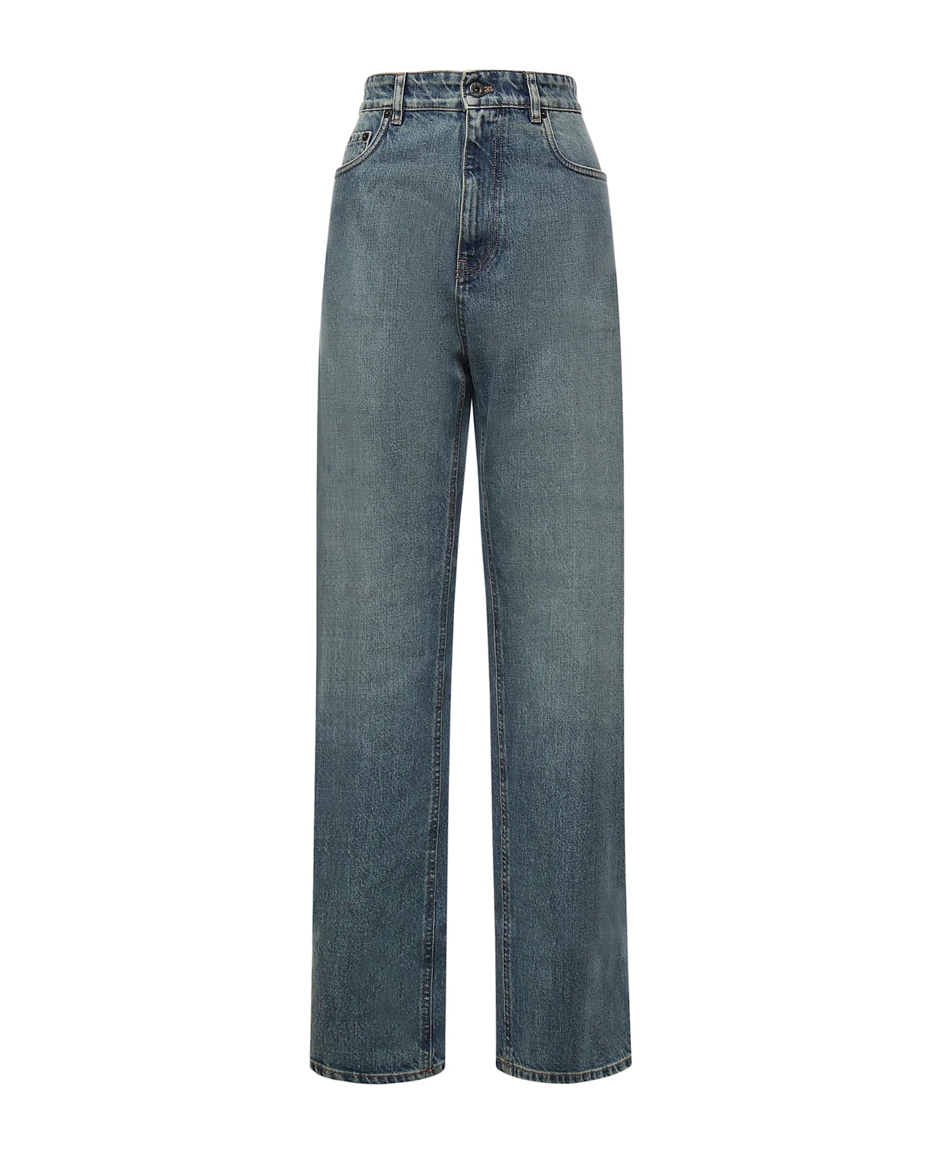 - Made of cotton denim - Zip and button closure - Regular waist with belt loops - Embroidered logo on the back - Size shown is 26 - Made in Italy - Color: Blue
