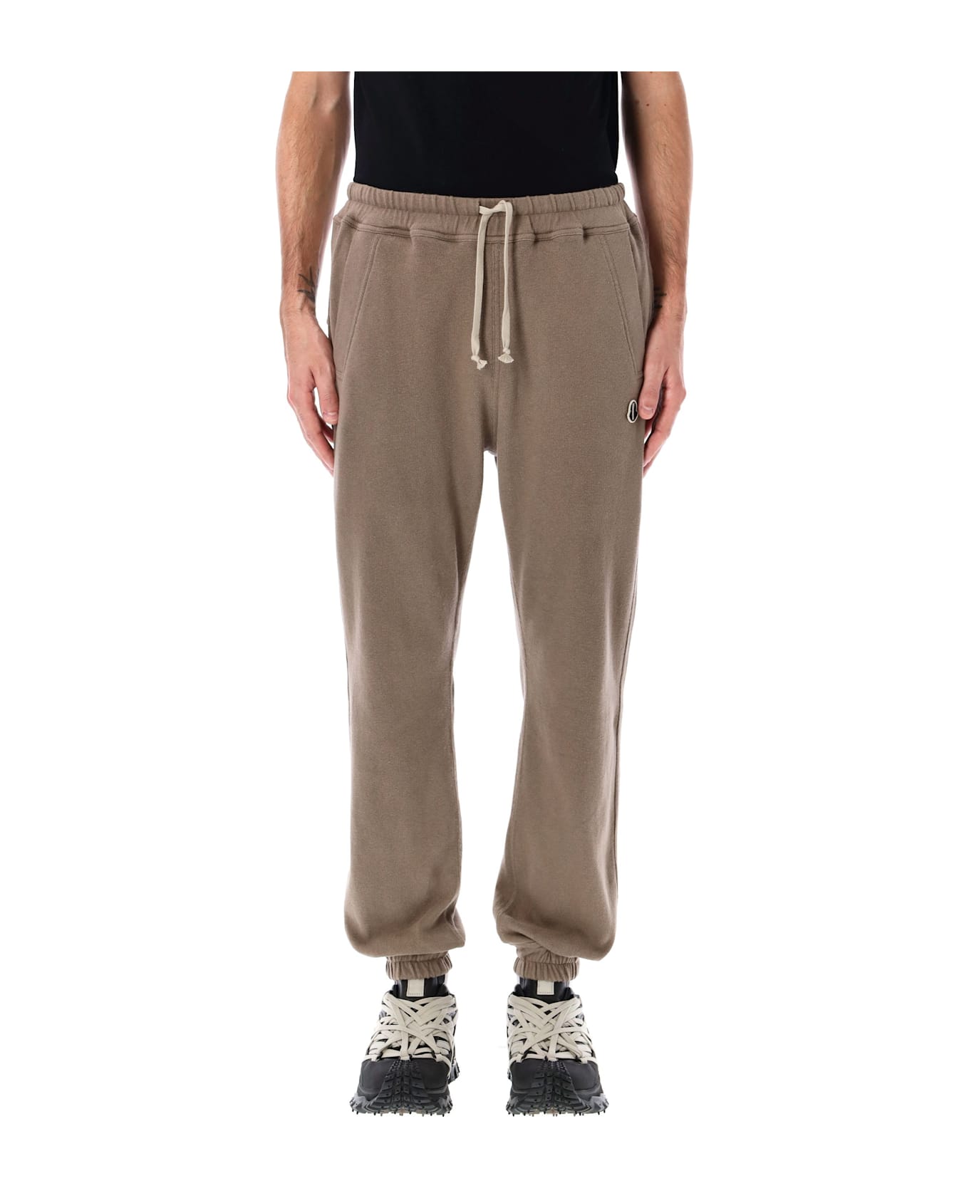 Joggers Unisex By Moncler + Rick Owens. Featuring: Cotton Knit Elatic Waist With Drawstring Slanted Pockets Logo Patch At Front Patch Pocket At Back Elastic Cuffs Model Is 1,90 M And Wears Size L