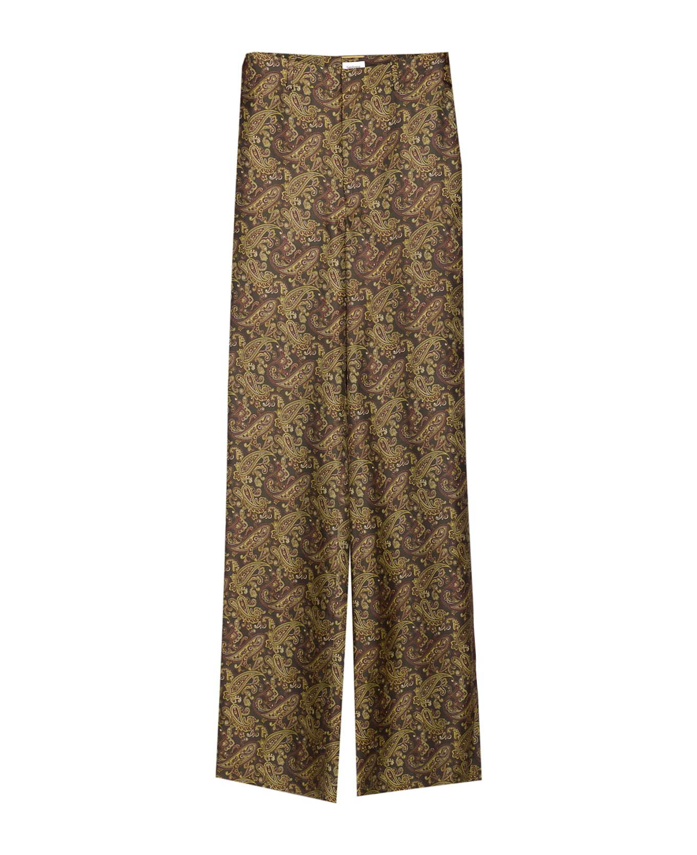 Saint Laurent green pants, zip and hook closure, lateral pockets, paisley print, flared fit Composition: 100% Silk