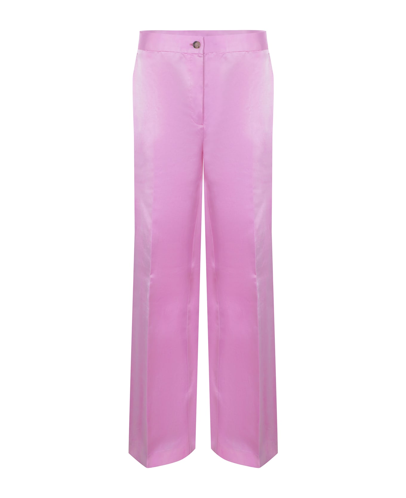 Pinko "Parlami" trousers made of Pink linen blend. Wide leg. Center fold. Slub workmanship gives the texture of the garment an uneven hand. French pockets on the sides. Welt pockets on the back. Concealed button and zip closure. 43% viscose 32% linen 25% cotton Made in Italy