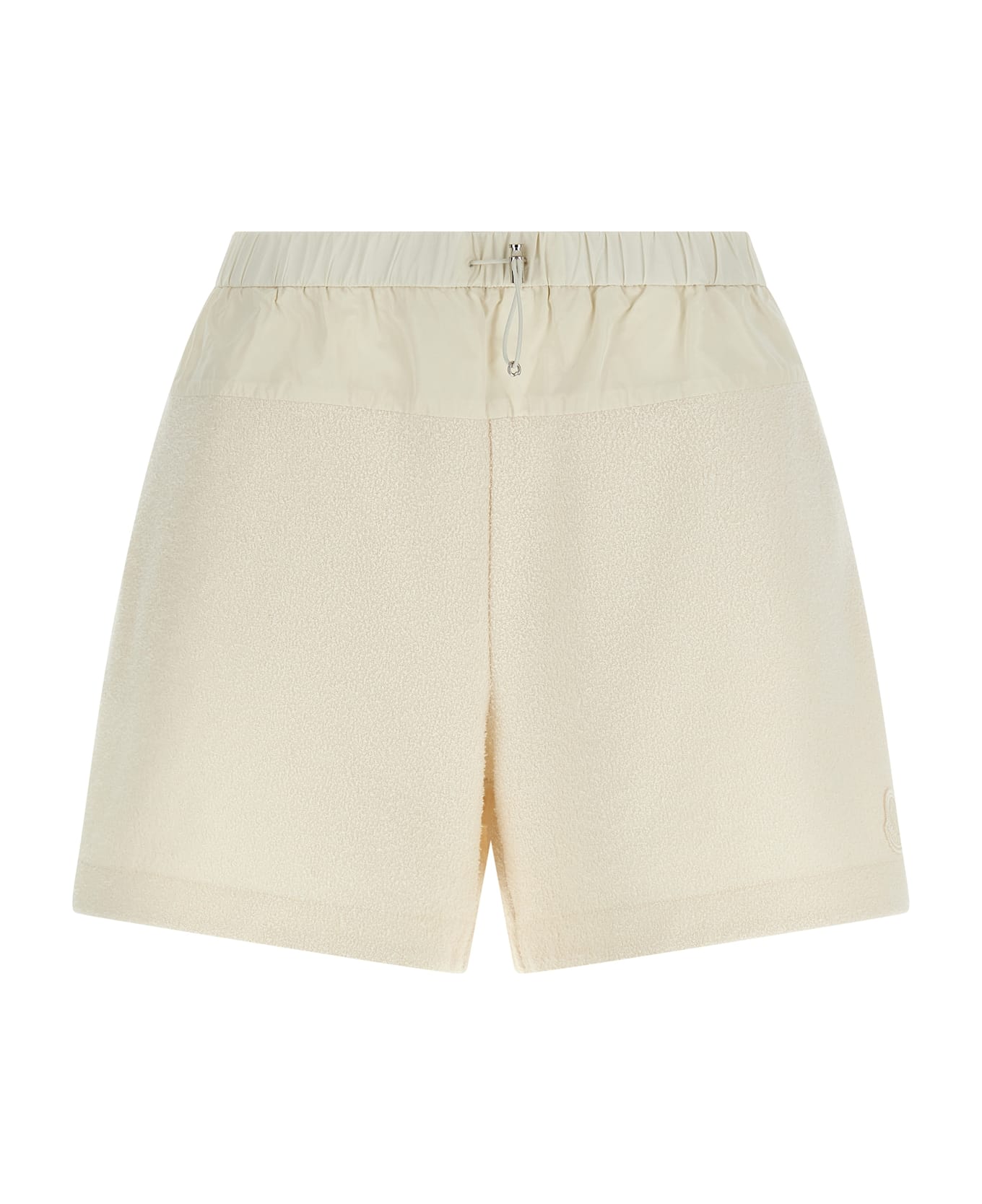 Lightweight bouclé fabric shorts, tone-on-tone nylon insert at the waist with elastic and drawstring, pockets, tone-on-tone grosgrain logo patch on the front. Composition: 100% polyester