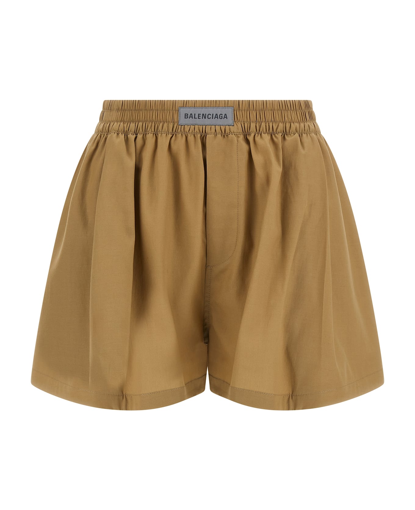 'Boxer A-Line' shorts in fluid cellulose poplin, boxer-inspired model, A-line silhouette, mid waist, pins, wide leg, elastic with logo patch at the waist, pockets. Composition: 65% lyocell 35% cotton