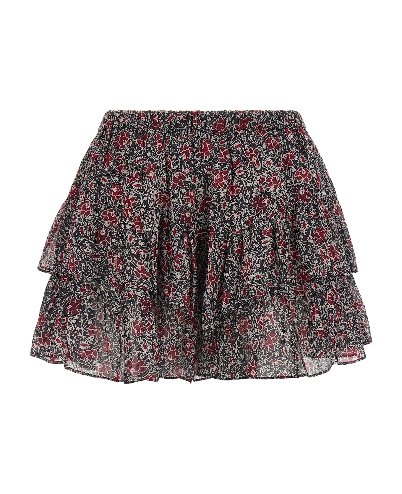 'Jacadia' micro-floral print cotton shorts with ruffles, 'pattinatrice' cut with elastic waistband.