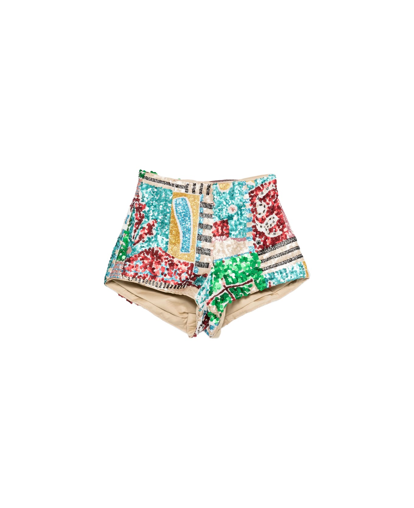 multicolour sequin embellishment patchwork design zip fastening
