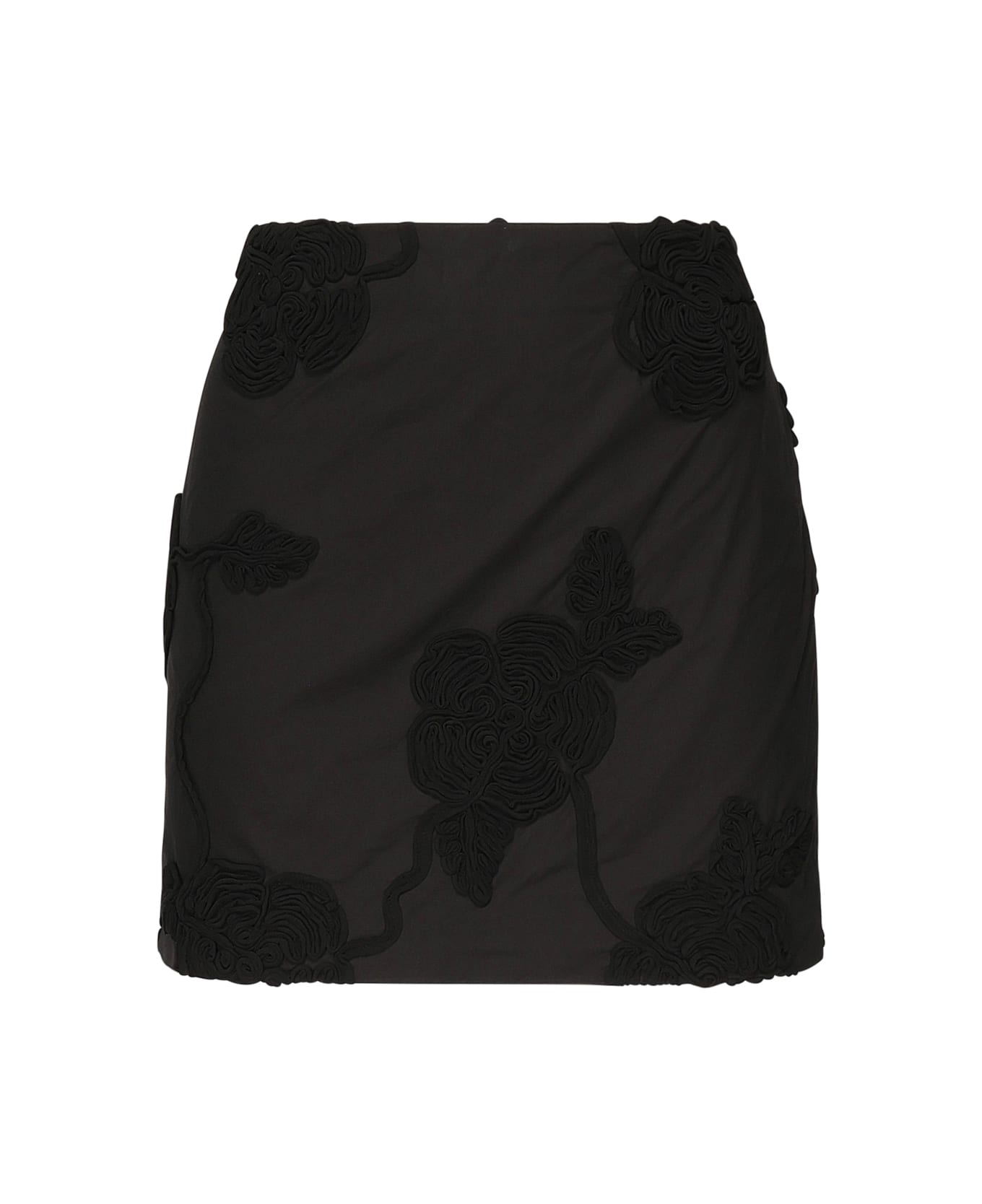 Black Mini Skirt With 3d Floral Details Applied All-over In Cotton Woman