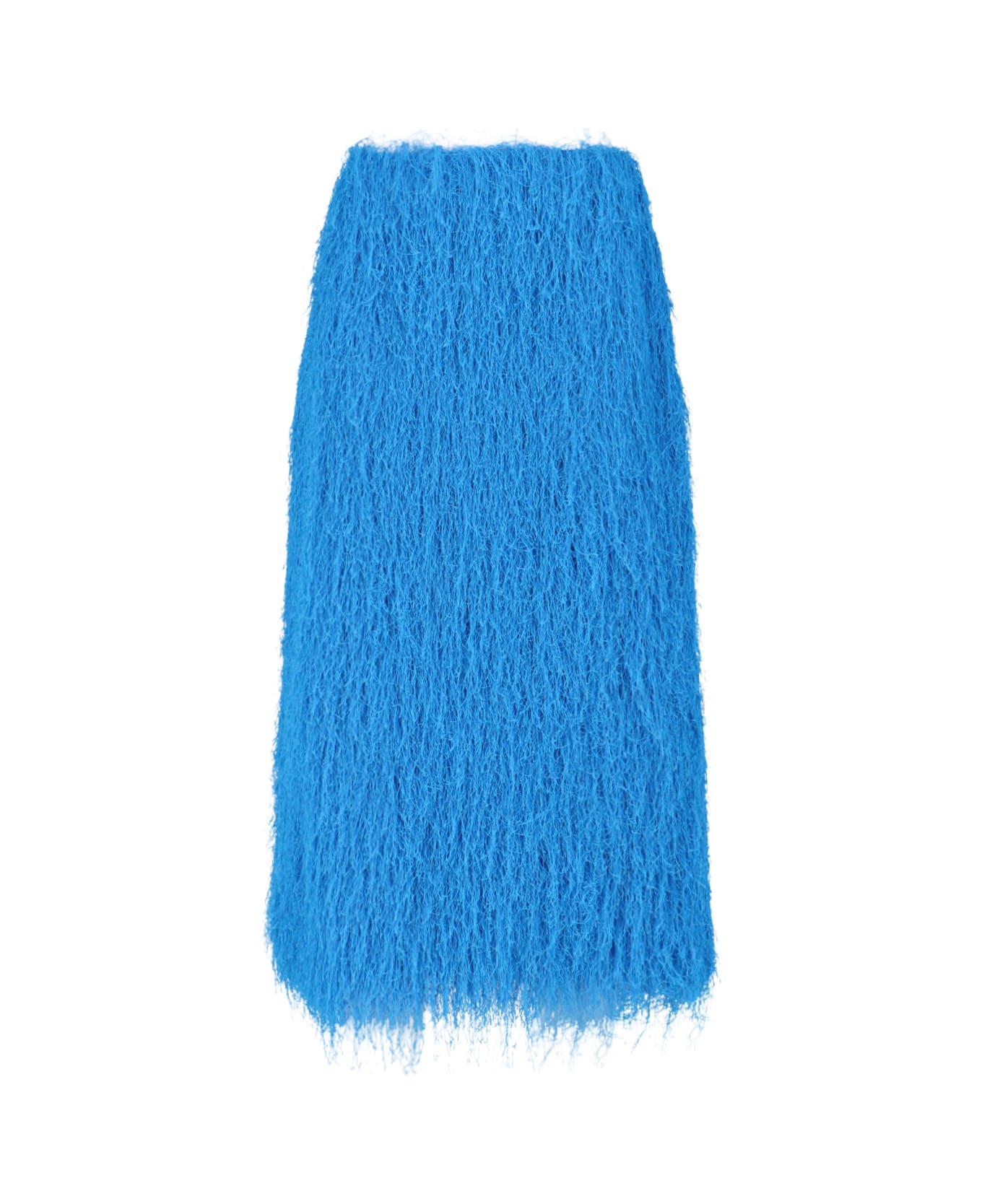 - Midi fringe skirt "Sokna" Dries Van Noten in blue fabric - mid-rise - front button closure - one back slit