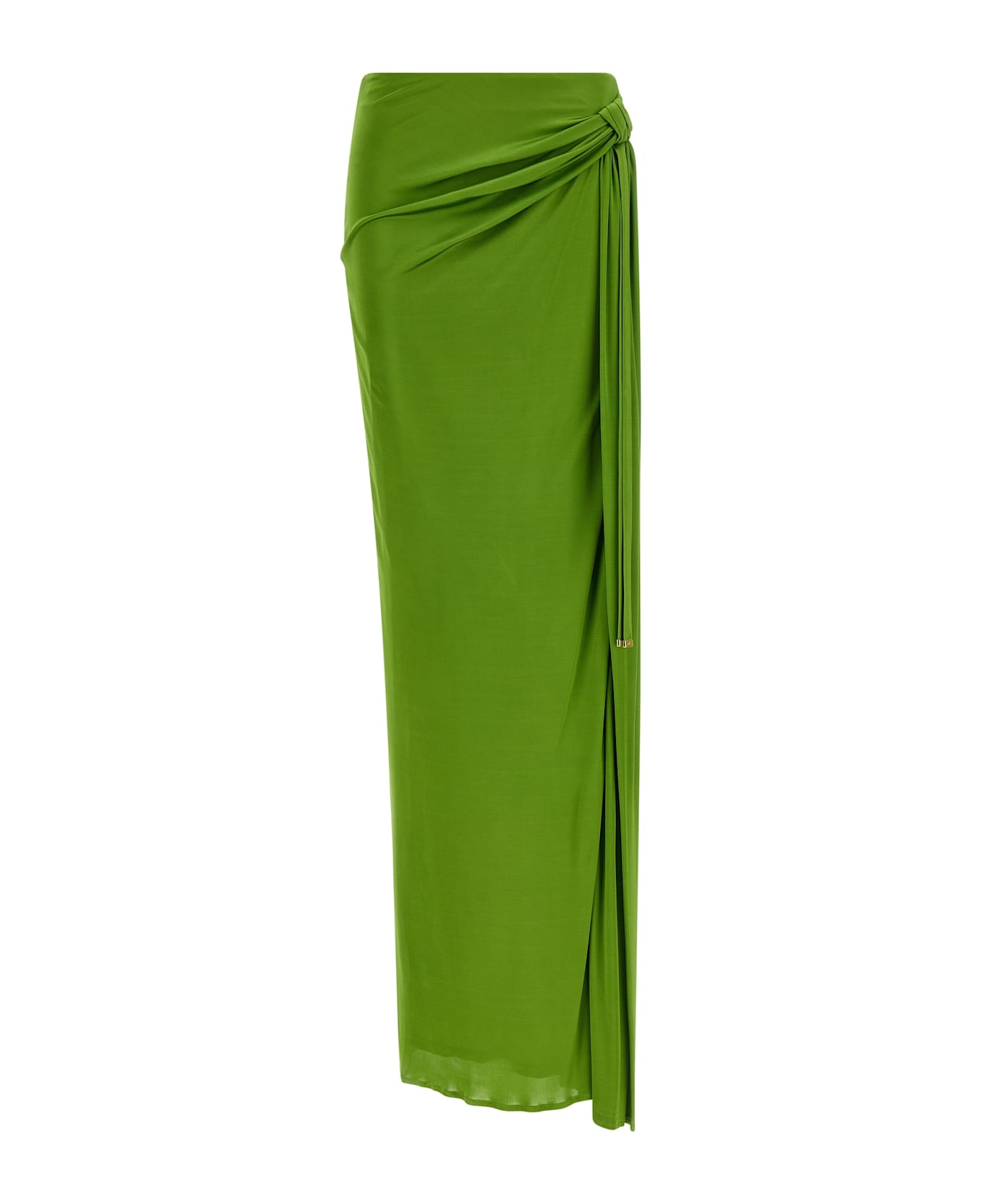 Extra long skirt in shiny viscose jersey, front knot detail to create curls with laces, wide split and side zip closure, unlined. Composition: 100% viscose