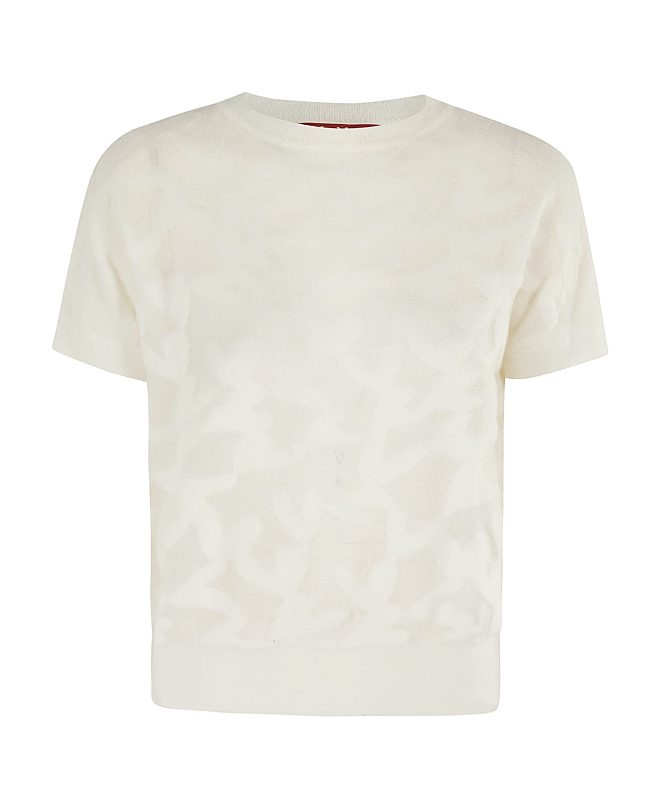 Panther sweater - Max Mara Studio - White color - Crew neck - Short sleeves - Transparencies - Embossed heart print