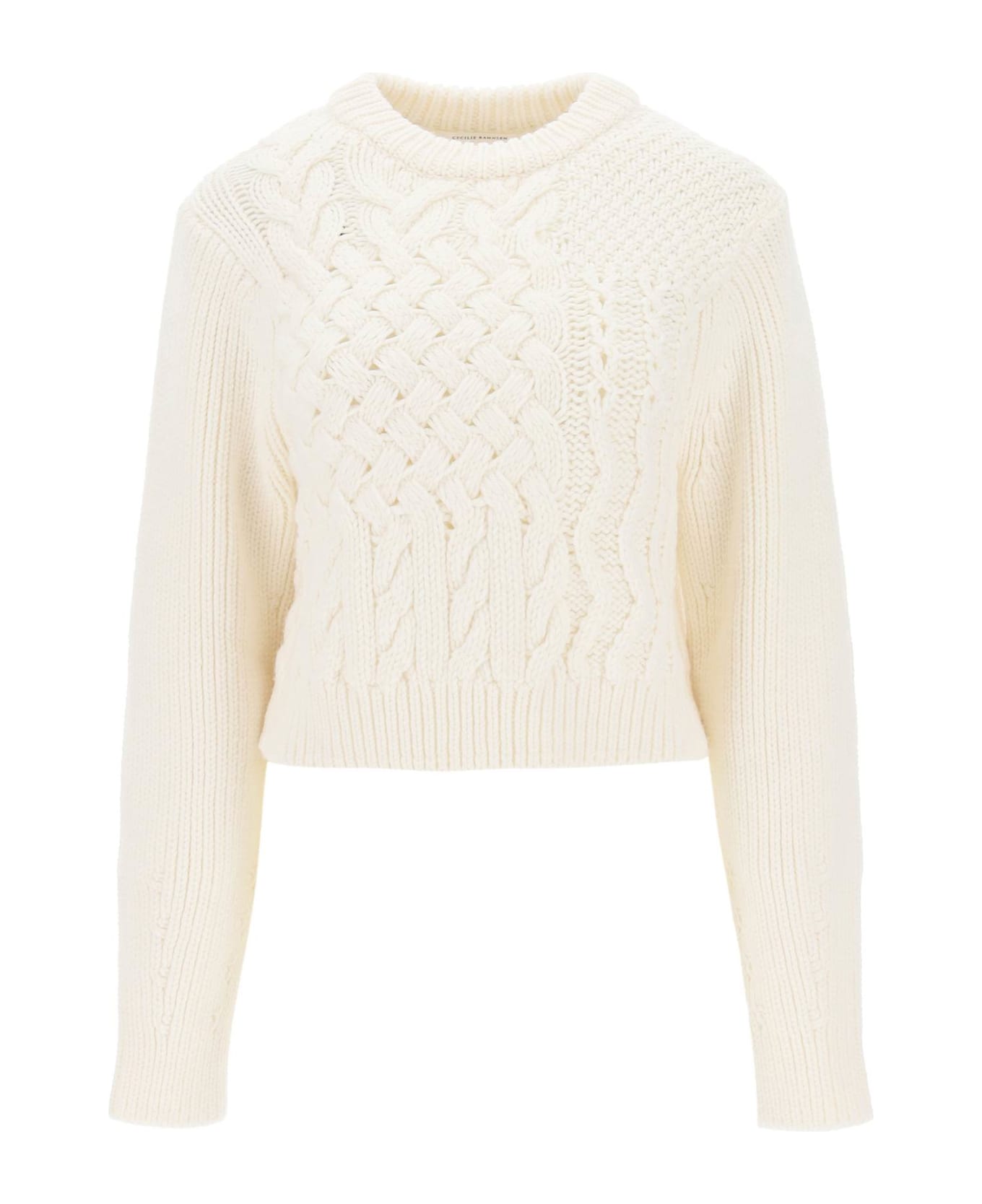 Crew-neck sweater by Cecilie Bahnsen crafted in pure merino wool fisherman's knit. Regular fit with cropped length. The model is 177 cm tall and wears size S.