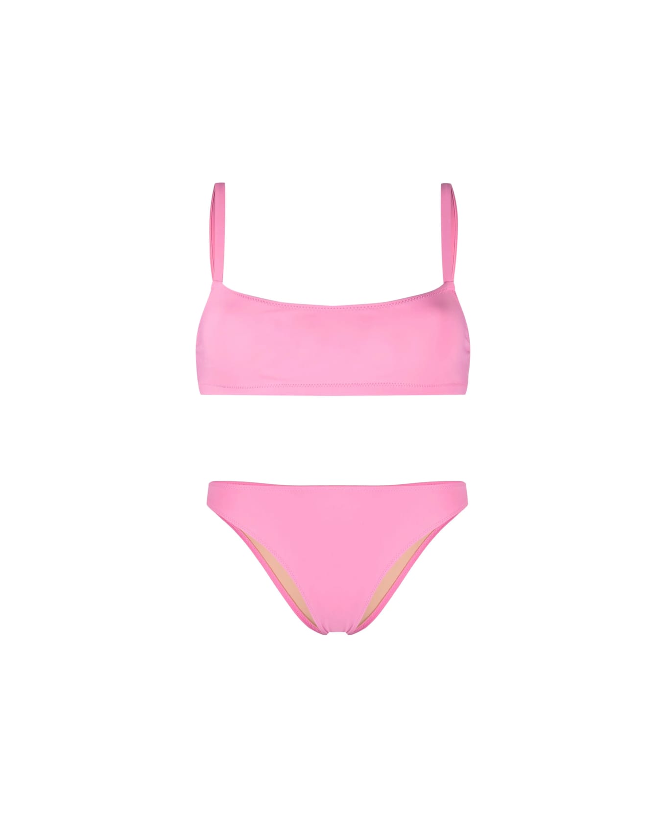 flamingo pink stretch-design tonal stitching high-waisted Be mindful to try on swimwear over your own garments.