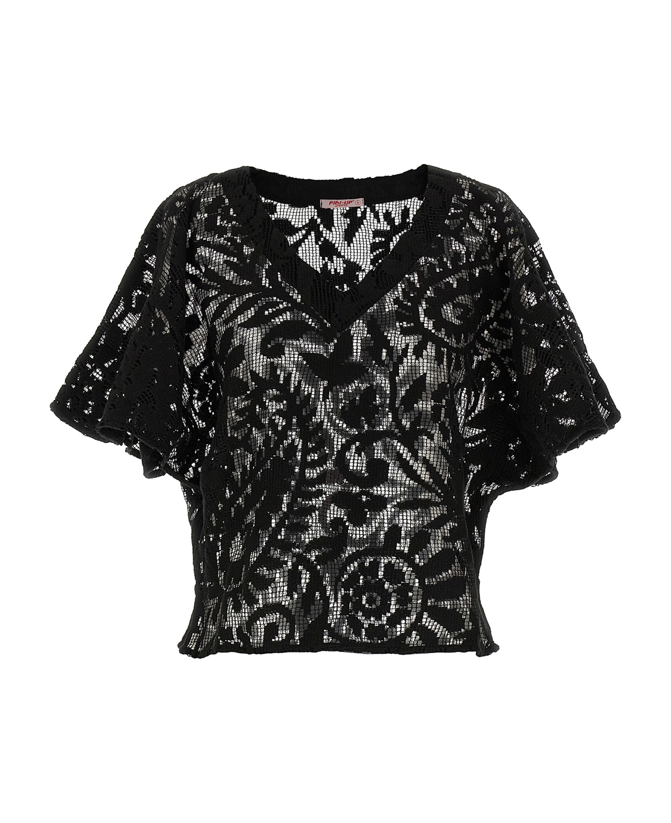 Macramé effect fabric blouse I do not see, V-neck, short butterfly effect sleeves, side slits. Composition: 80% polyester, 20% cotton
