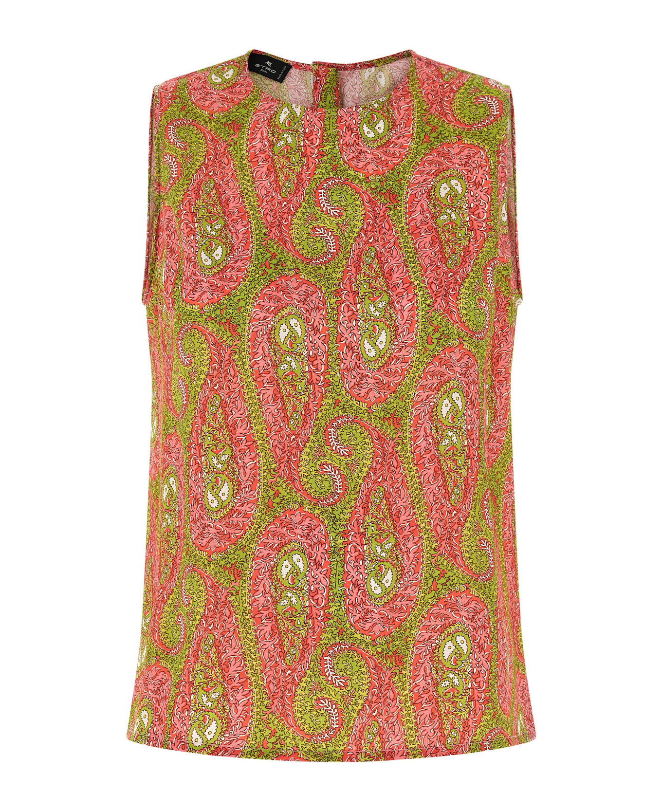 All-over 'Paisley Foliage' twill fabric fluid top, crew neck, back button closure, side slits. Composition: 100% polyester