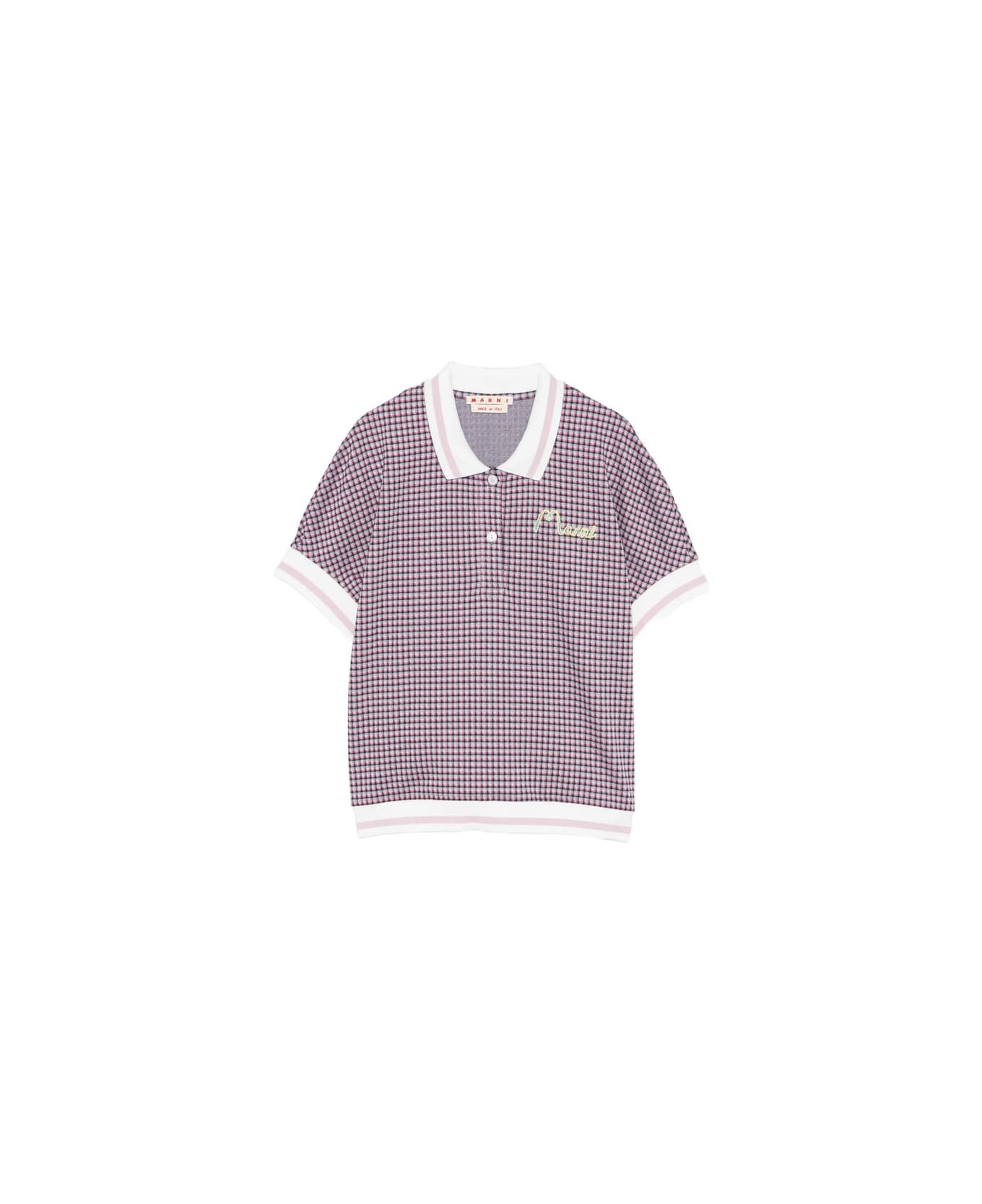 light pink and multicolour check pattern embroidered logo point collar button fastening