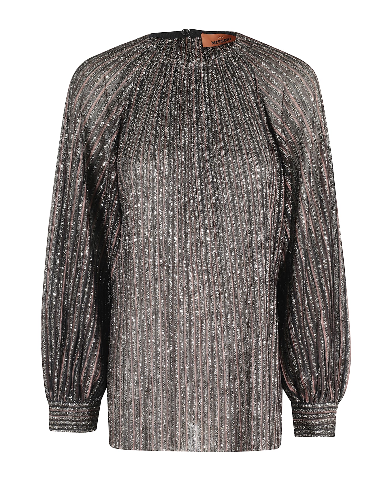 Sweater -Missoni -Color brown black -Long sleeve -Circle neck -Back button closure -All over sequins