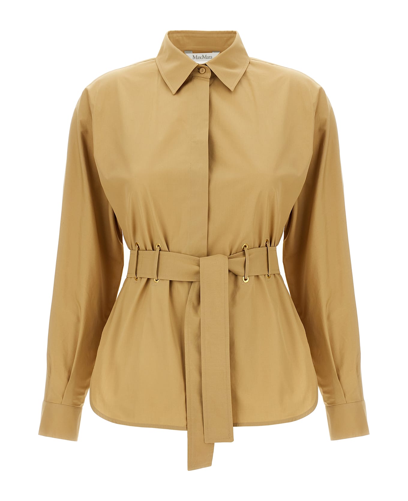 'Juglas' cotton poplin shirt with button closure, long kimono sleeves with cuffs, belt loops at the waist with brass rivets and tie belt, side slits. Composition: 100% cotton