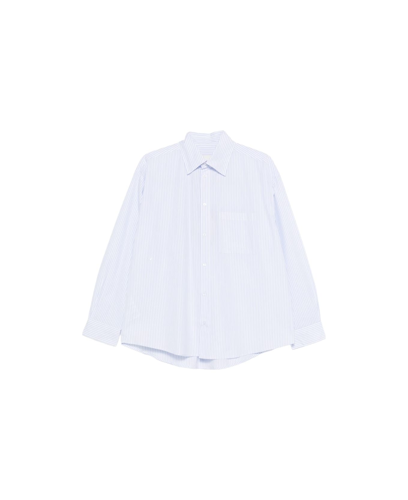 blue striped pattern chest pocket button fastening long sleeves classic collar