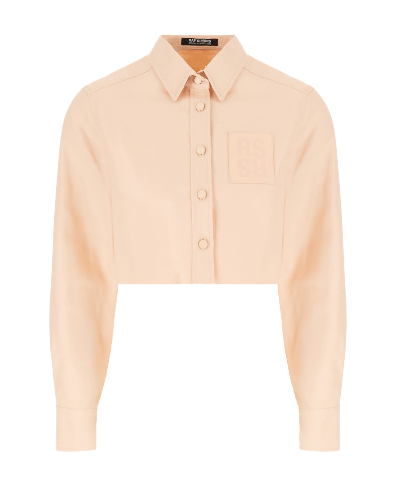 Short-cut shirt realized in pure cotton piquet enriched by tonal rubberized logoed plate at the front. -Pointed collar -Buttons closure at the front -Buttoned angle cuffs