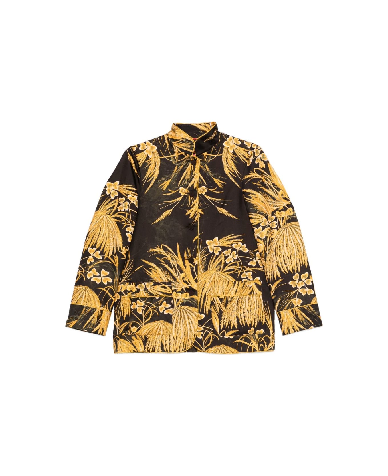 yellow floral print mandarin collar button fastening long sleeves patch pockets