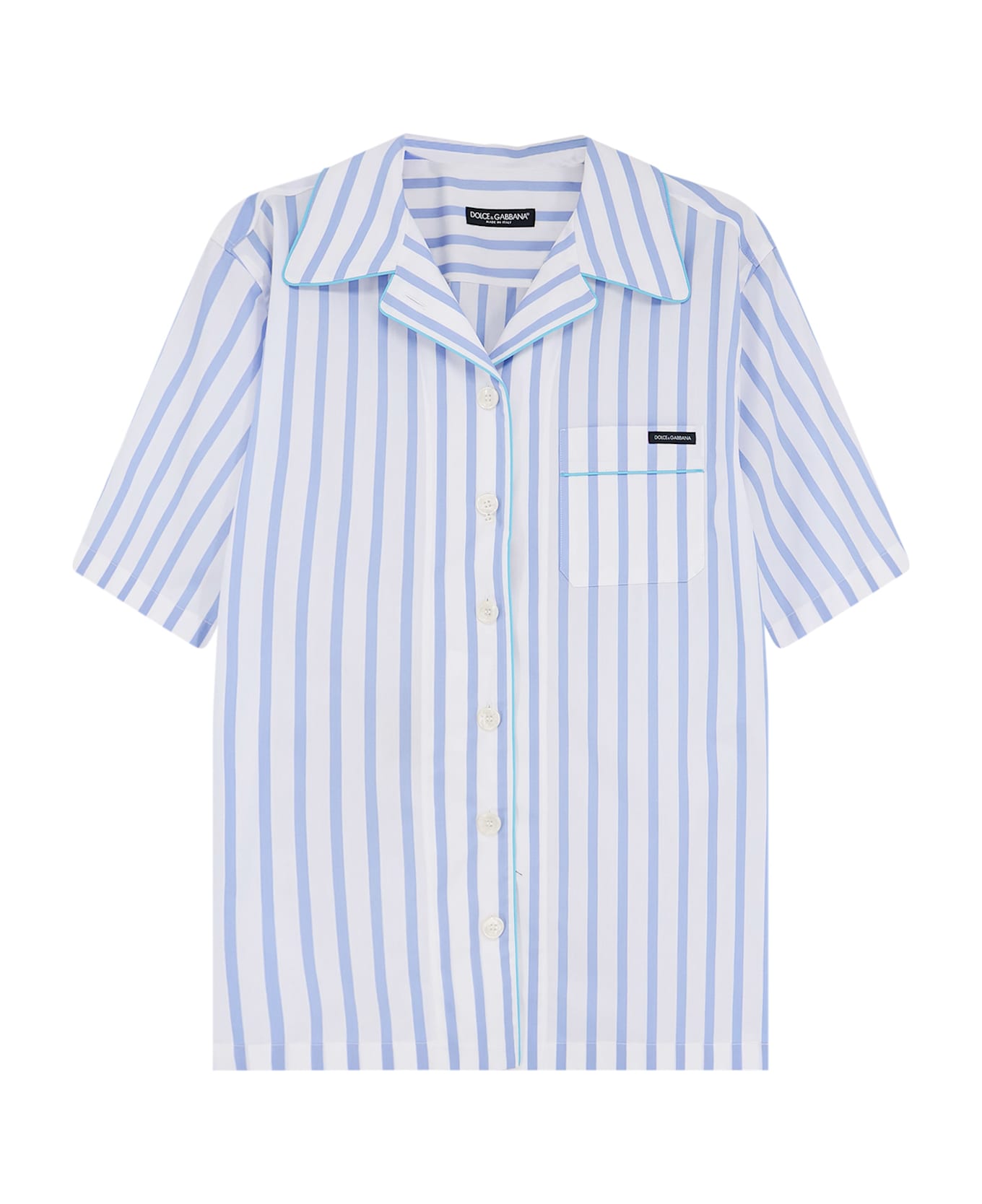 Button closure Wide bowling collar Patch pocket with logo patch Short sleeves Contrasting trim Striped pattern Made in Italy 95% cotton, 5% silk SKU: F5U31TFR52WS8051