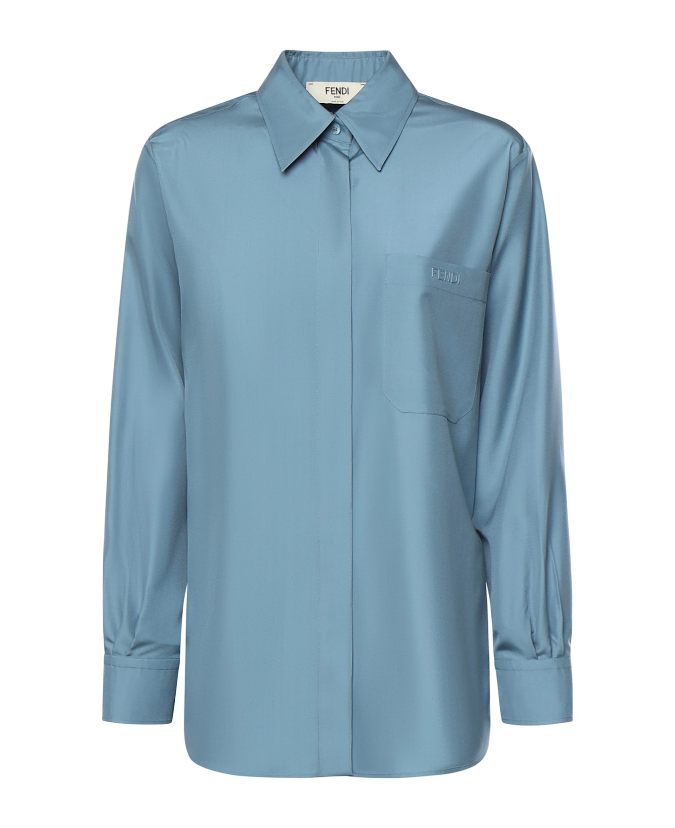 - Made of silk poplin - Front button closure - Long sleeves - Oversized - Made in Italy - Size shown is 38 - Designer color: Blue