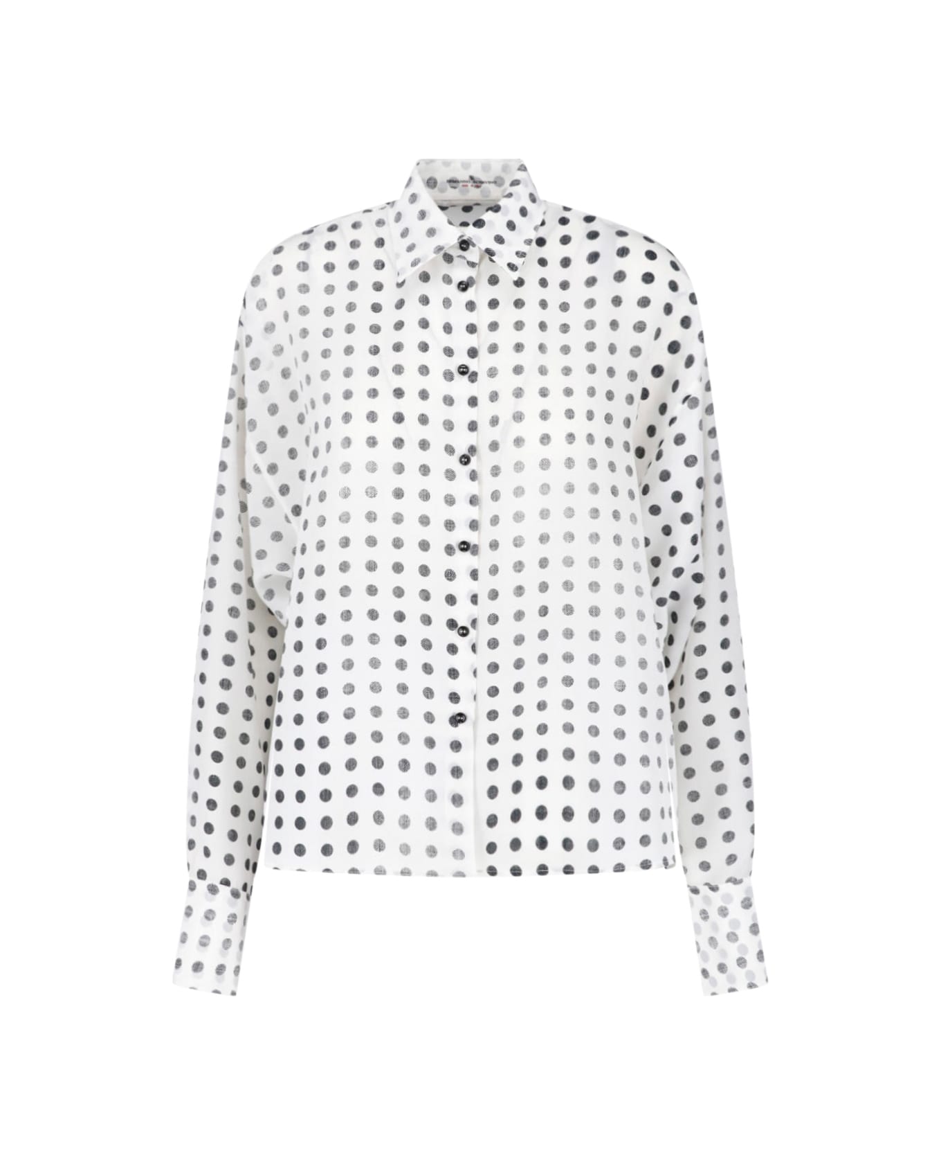 - White silk shirt by Ermanno Scervino - Black polka dot pattern - Classic collar - Button closure - Cuff buttons