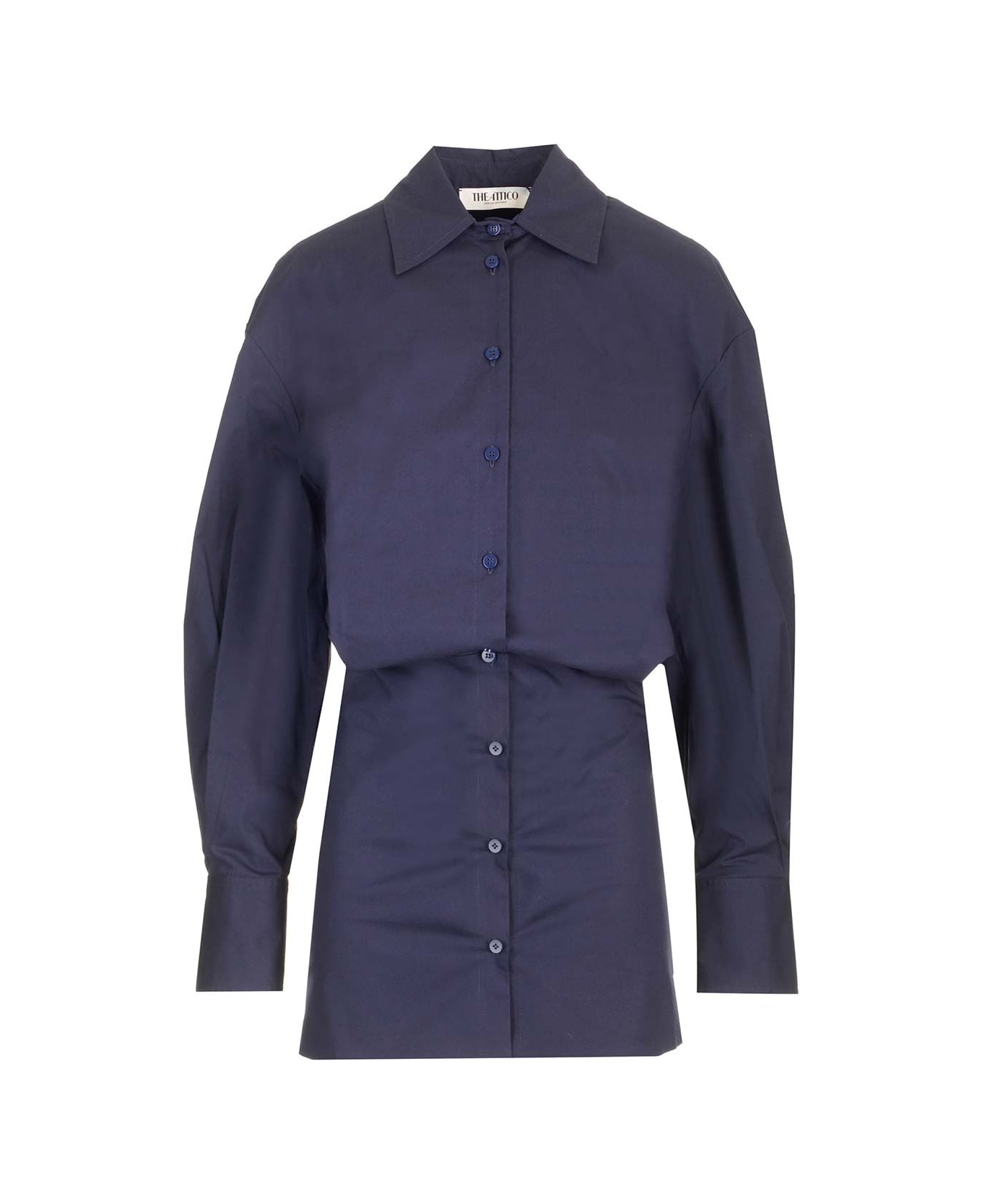 Mini dress from The Attico in navy blue stretch poplin, with shirt silhouette, short straight skirt, tone-on-tone buttons along the entire length, classic collar. Composition: Main Material: 97% CO 3%EA
