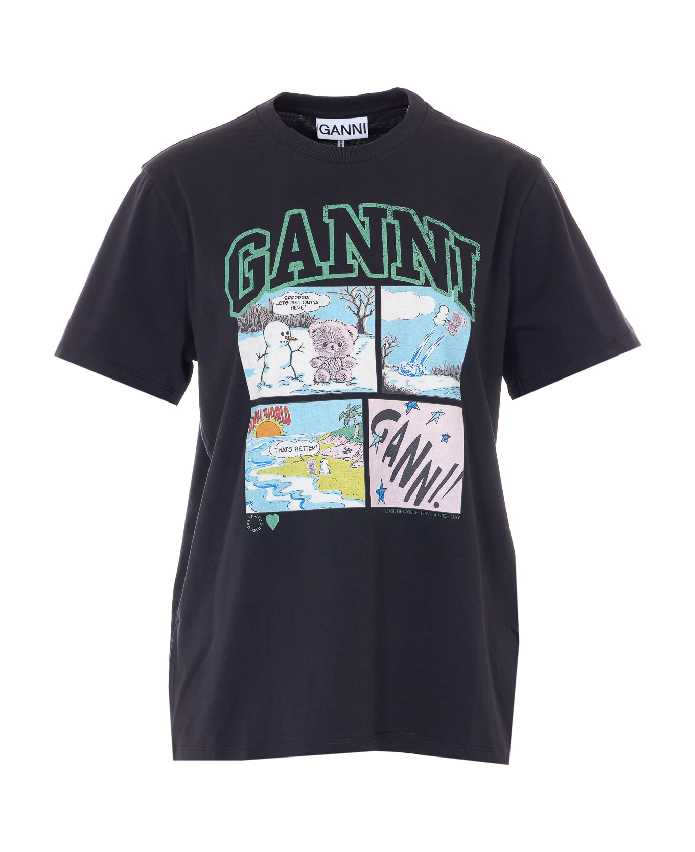 Ganni phatom basic cotton t-shirt, crewneck, print logo on the front Composition: 100% Organic Cotton